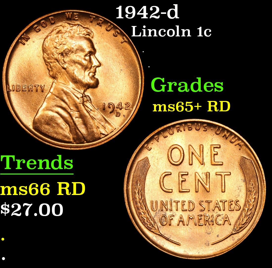 1942-d . . Lincoln Cent 1c Grades Gem+ Unc RD.