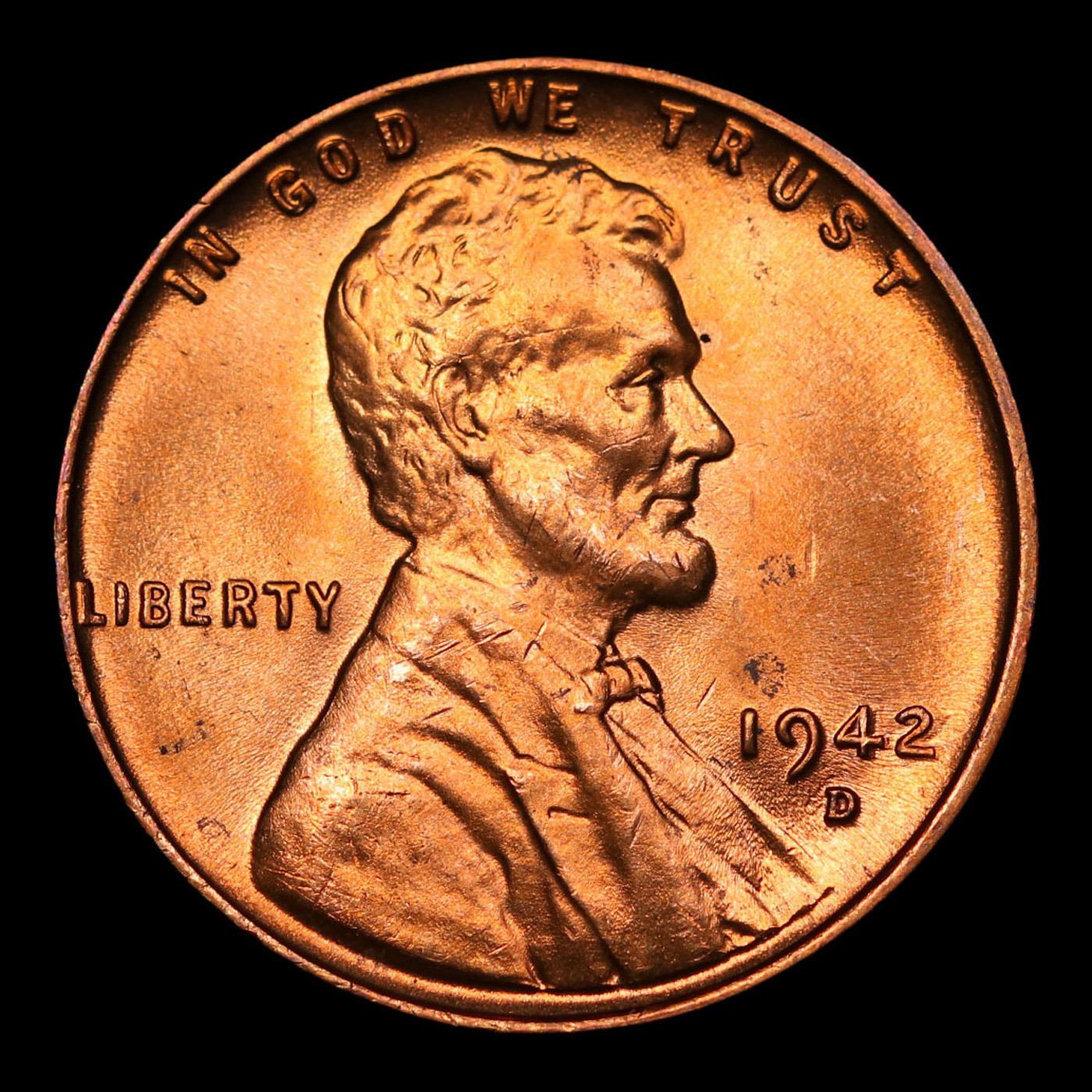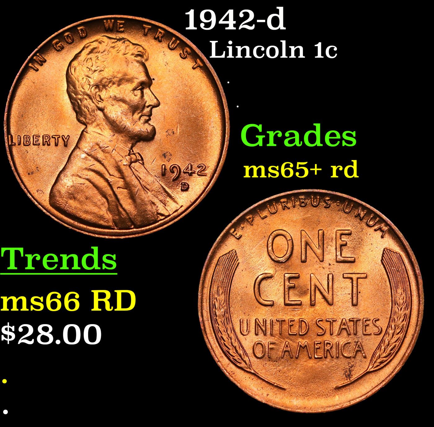 1942-d Lincoln Cent 1c Grades Gem+ Unc RD.