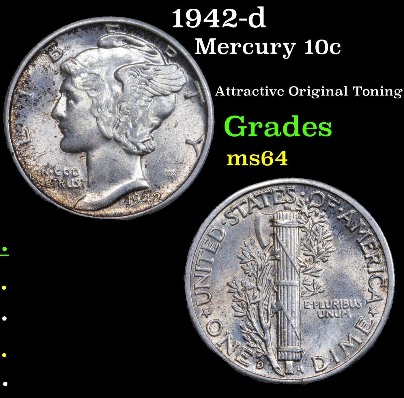 1942-d Mercury Dime 10c Grades Choice Unc.