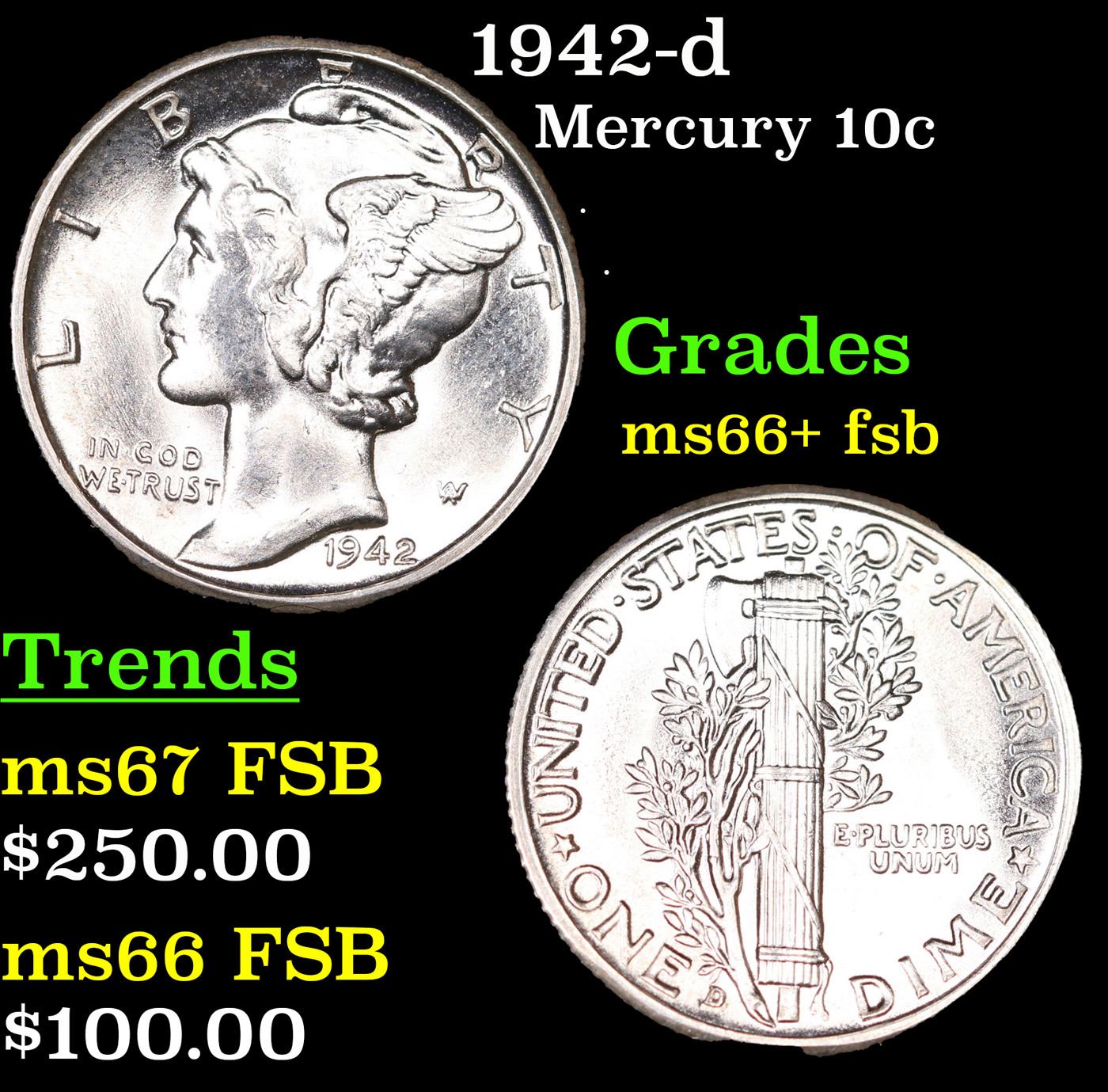 1942-d Mercury Dime 10c Grades GEM++ FSB.
