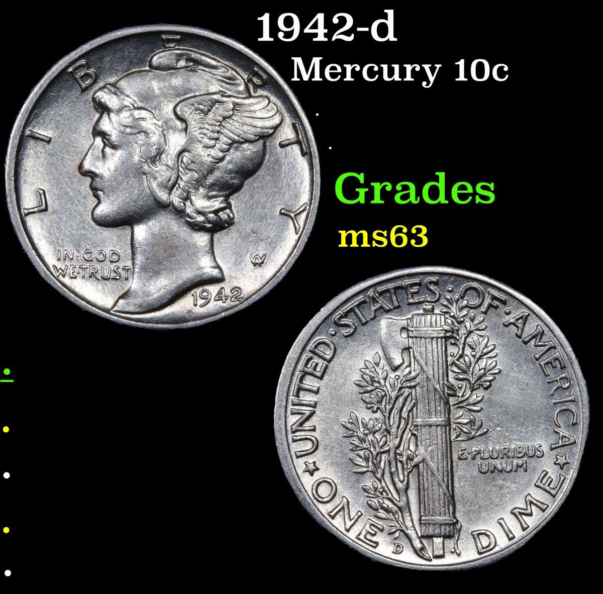 1942-d . . Mercury Dime 10c Grades Select Unc.