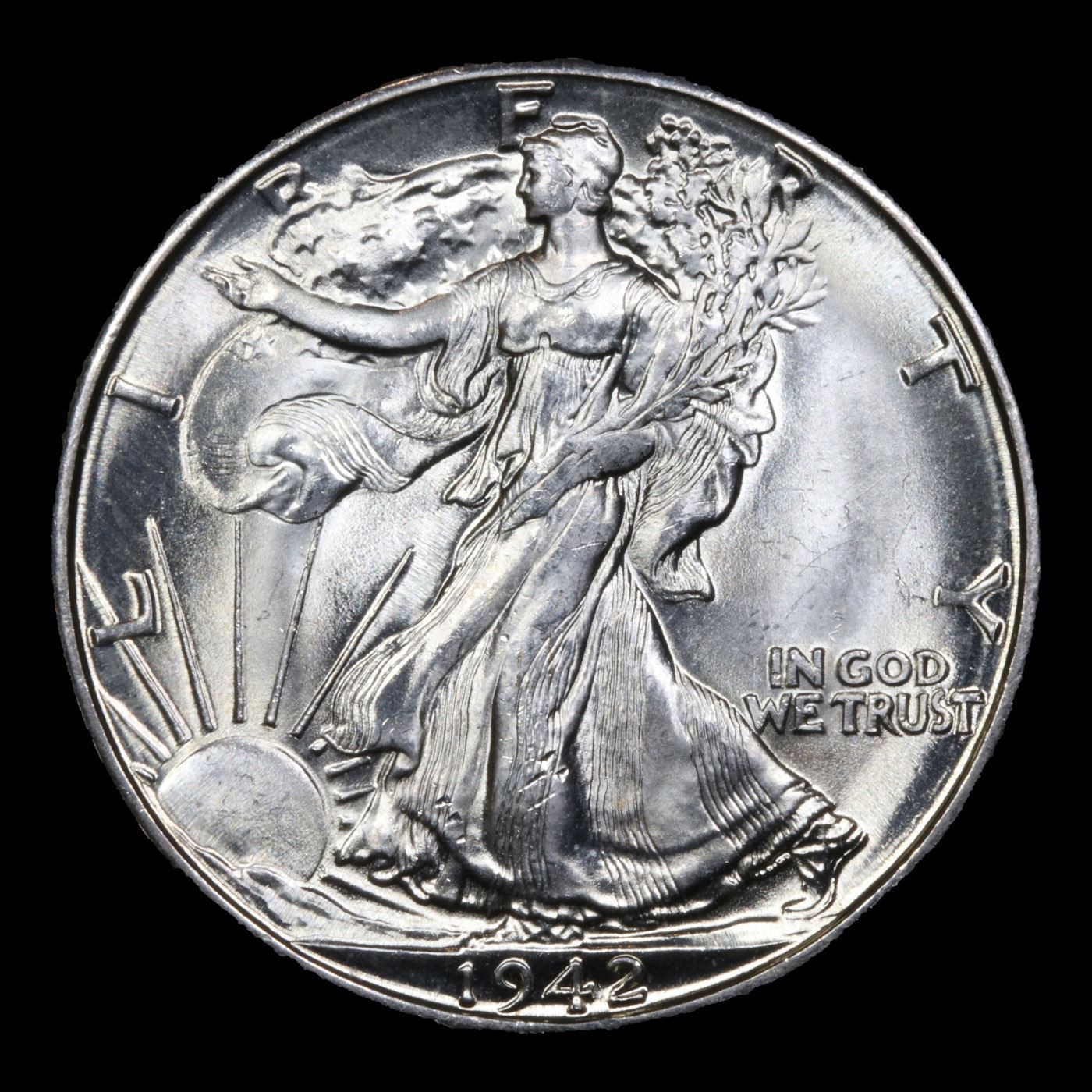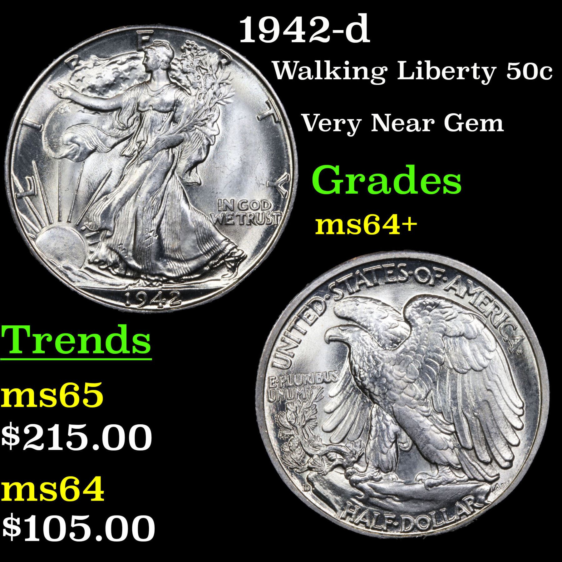 1942-d Walking Liberty Half Dollar 50c Grades Choice+ Unc.