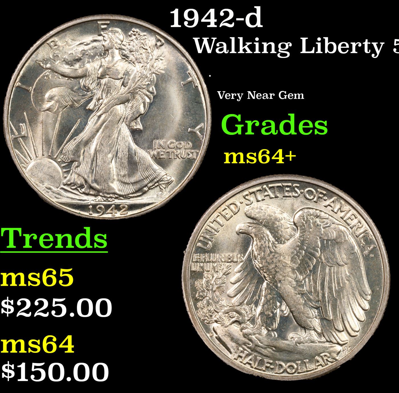 1942-d Walking Liberty Half Dollar 50c Grades Choice+ Unc.