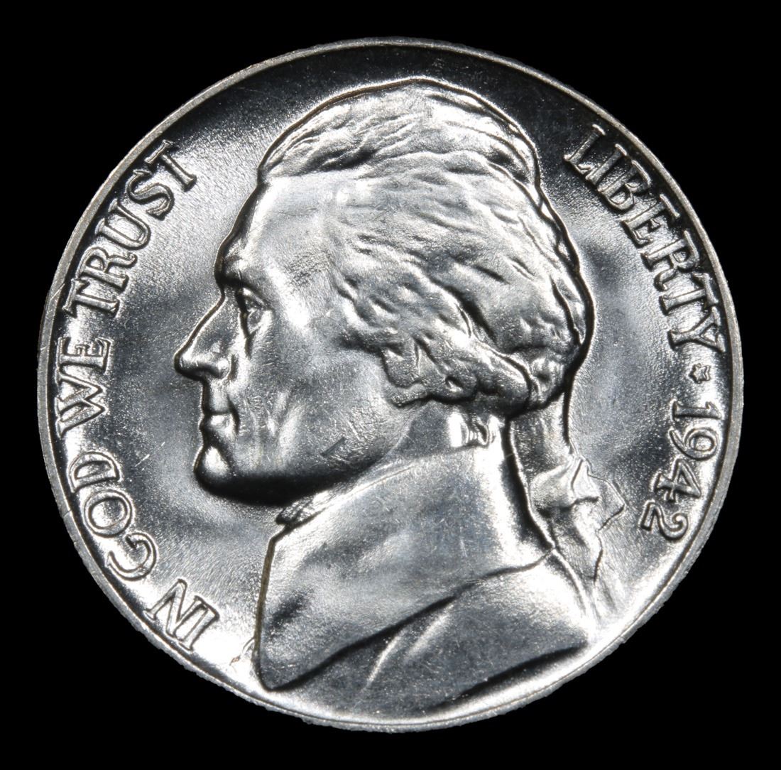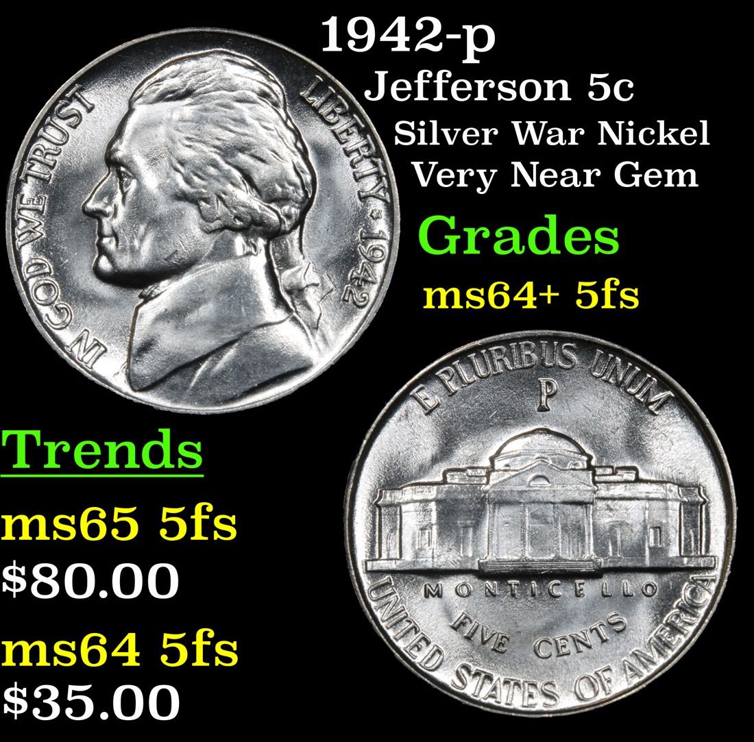 1942-p Silver War Nickel Very Near Gem Jefferson Nickel 5c Grades Choice Unc+ 5fs.