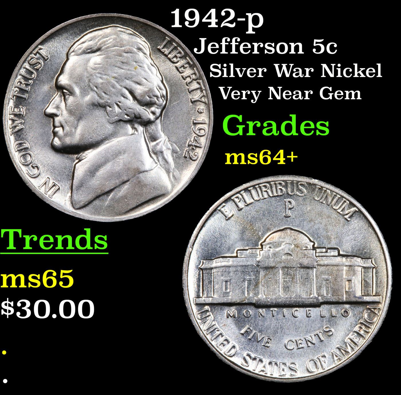 1942-p Jefferson Nickel 5c Grades Choice+ Unc.