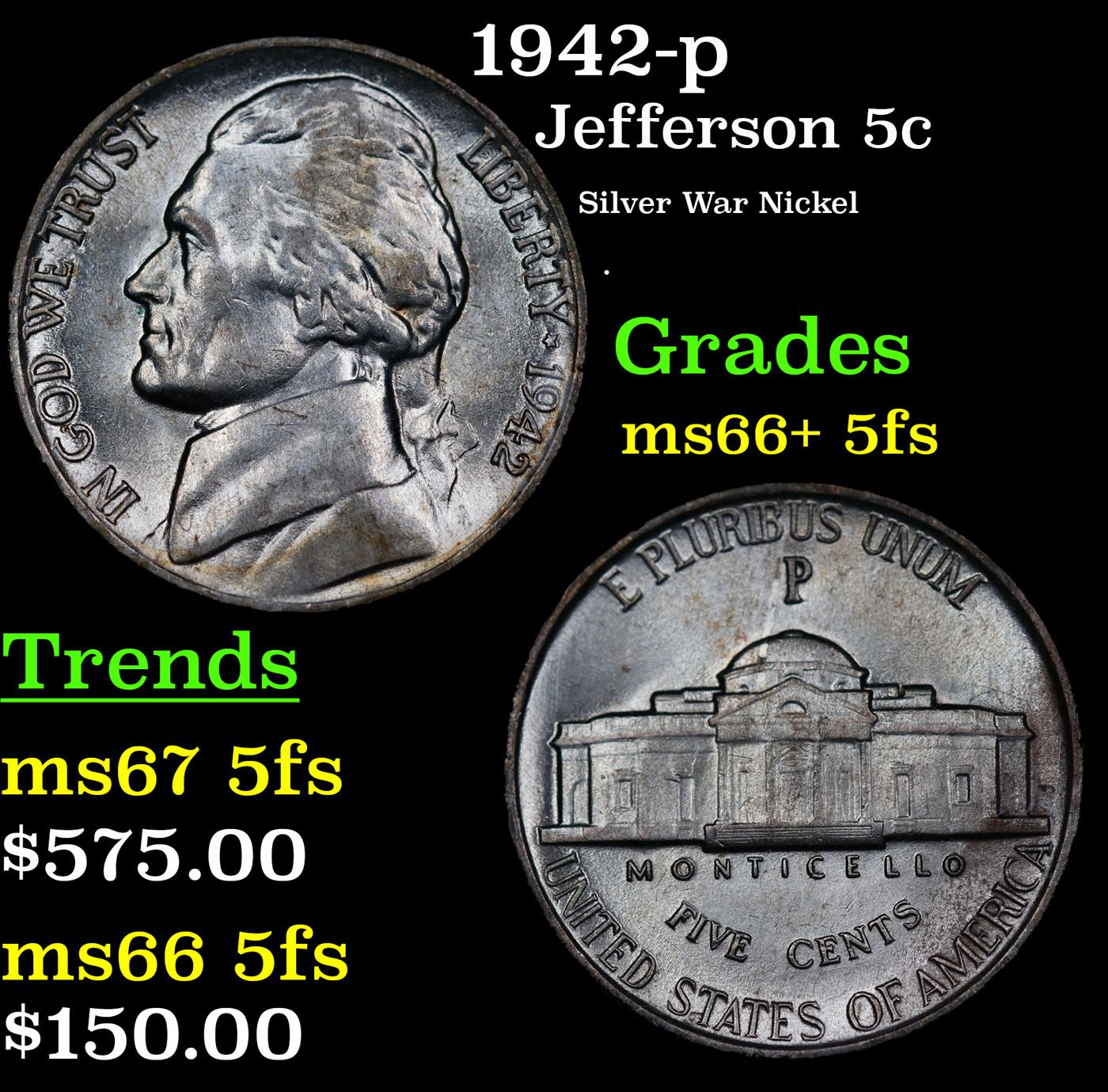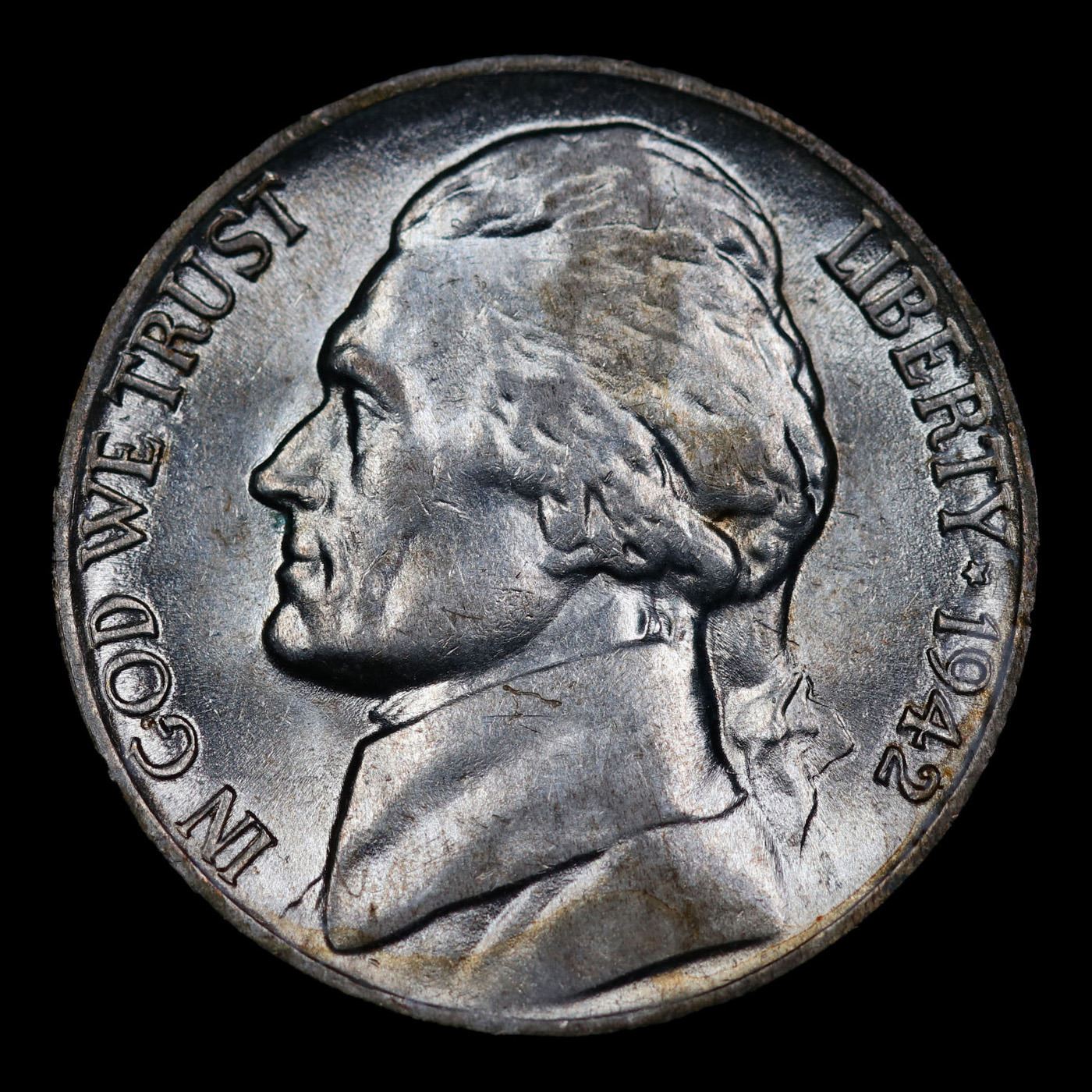 1942-p Jefferson Nickel 5c Grades GEM++ 5fs.