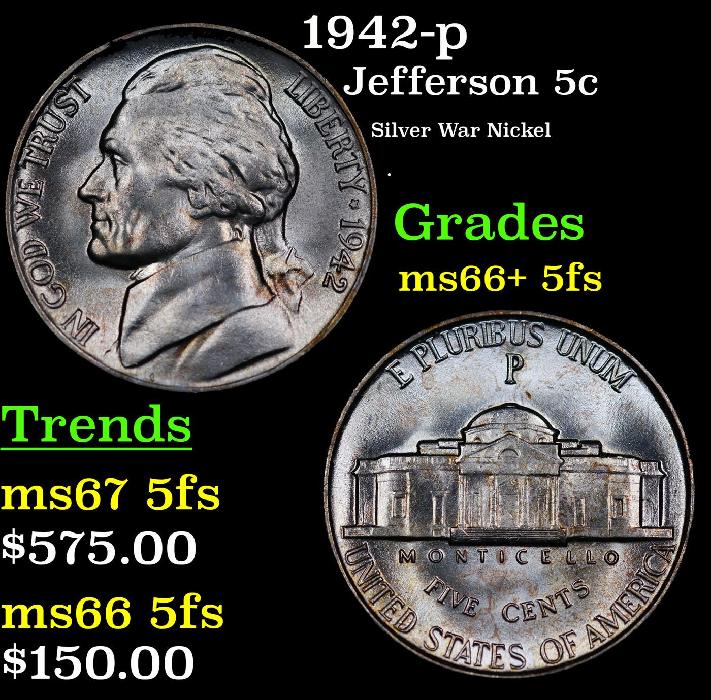 1942-p Jefferson Nickel 5c Grades GEM++ 5fs.