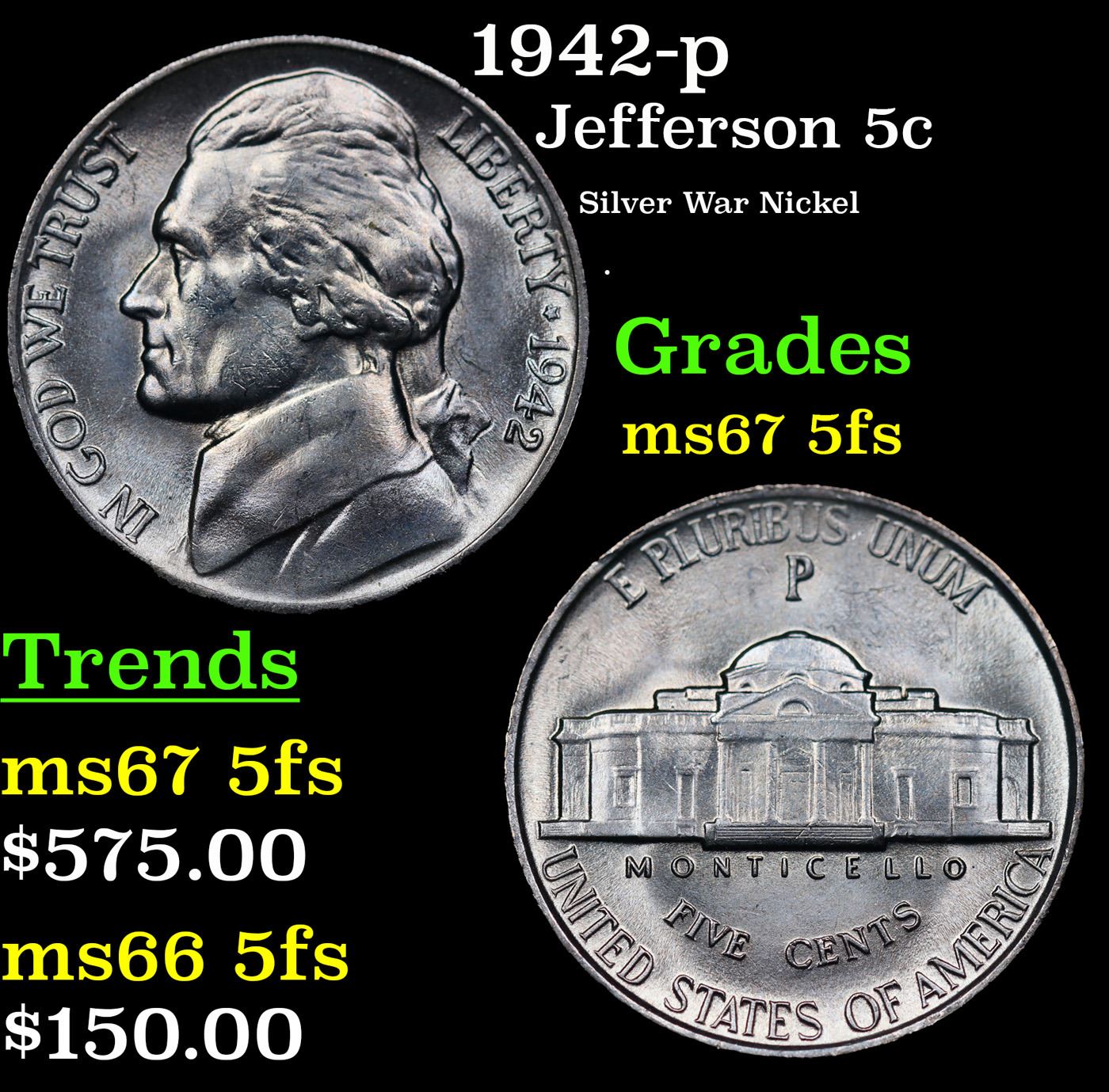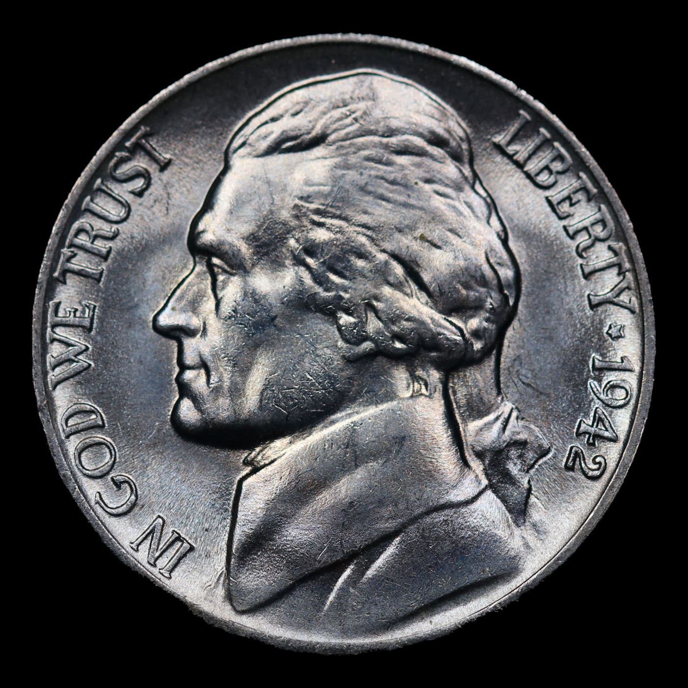 1942-p Jefferson Nickel 5c Grades GEM++ 5fs.