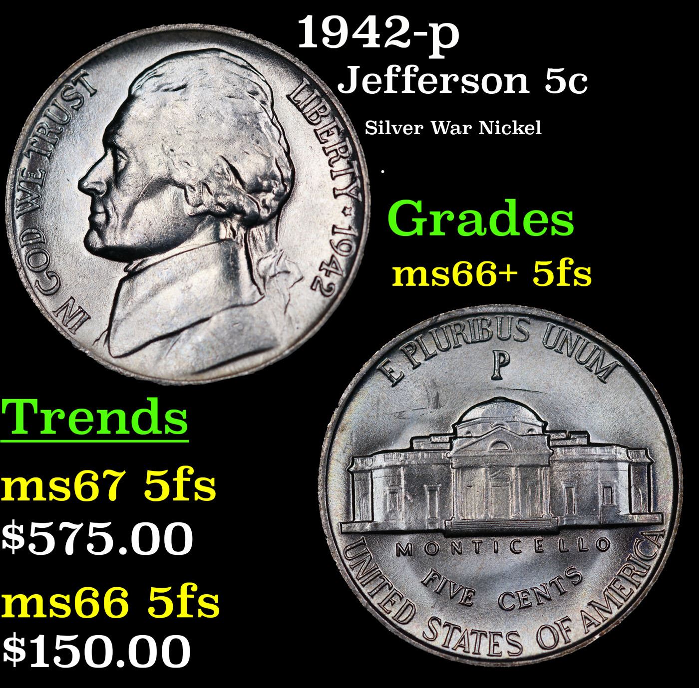 1942-p Jefferson Nickel 5c Grades GEM++ 5fs.