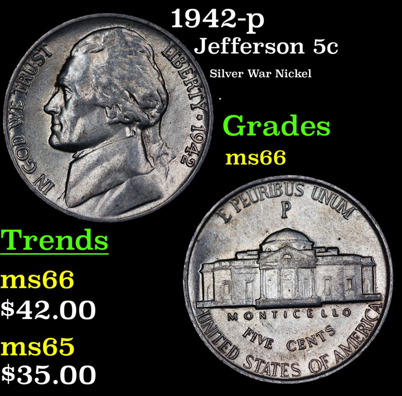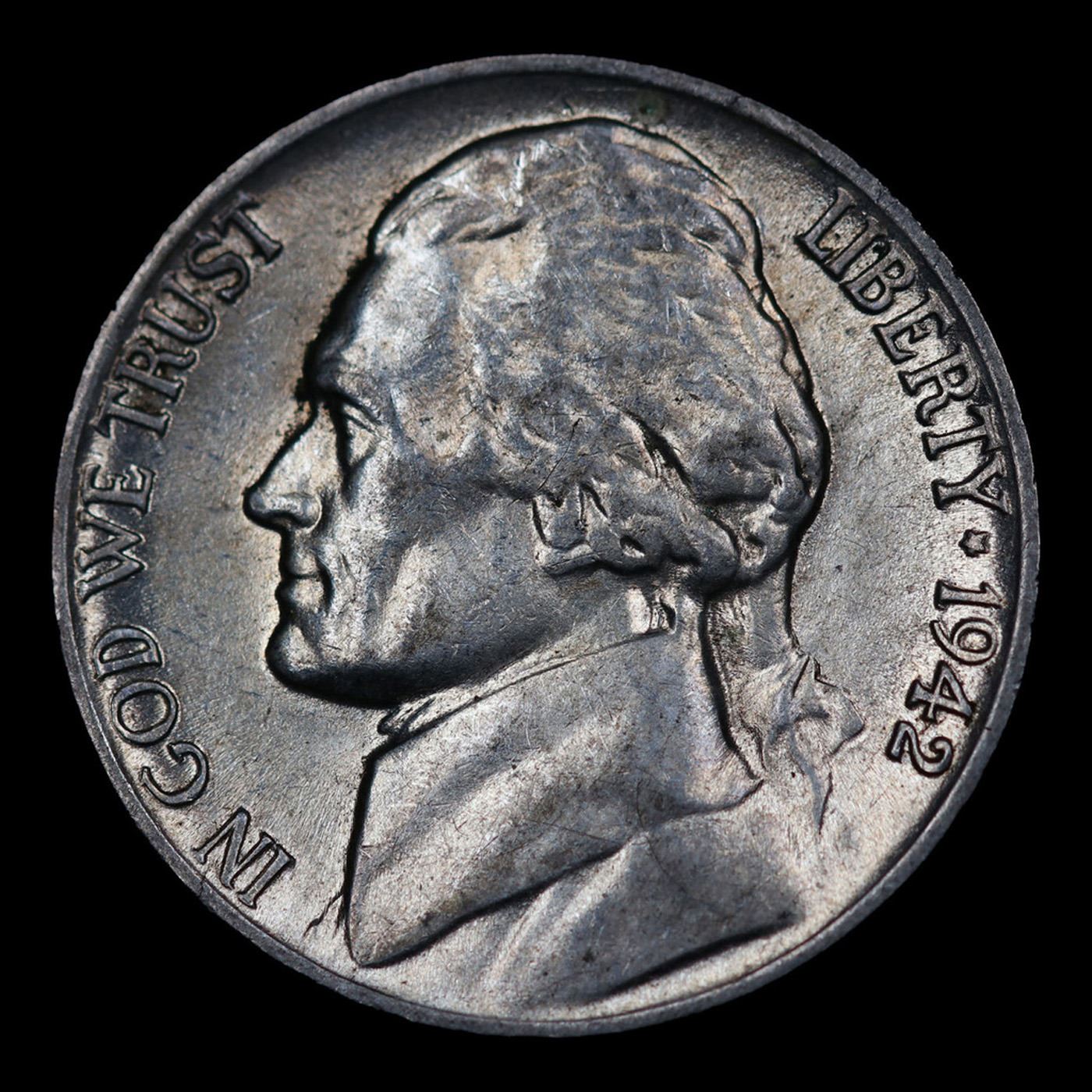 1942-p Jefferson Nickel 5c Grades GEM+ Unc.