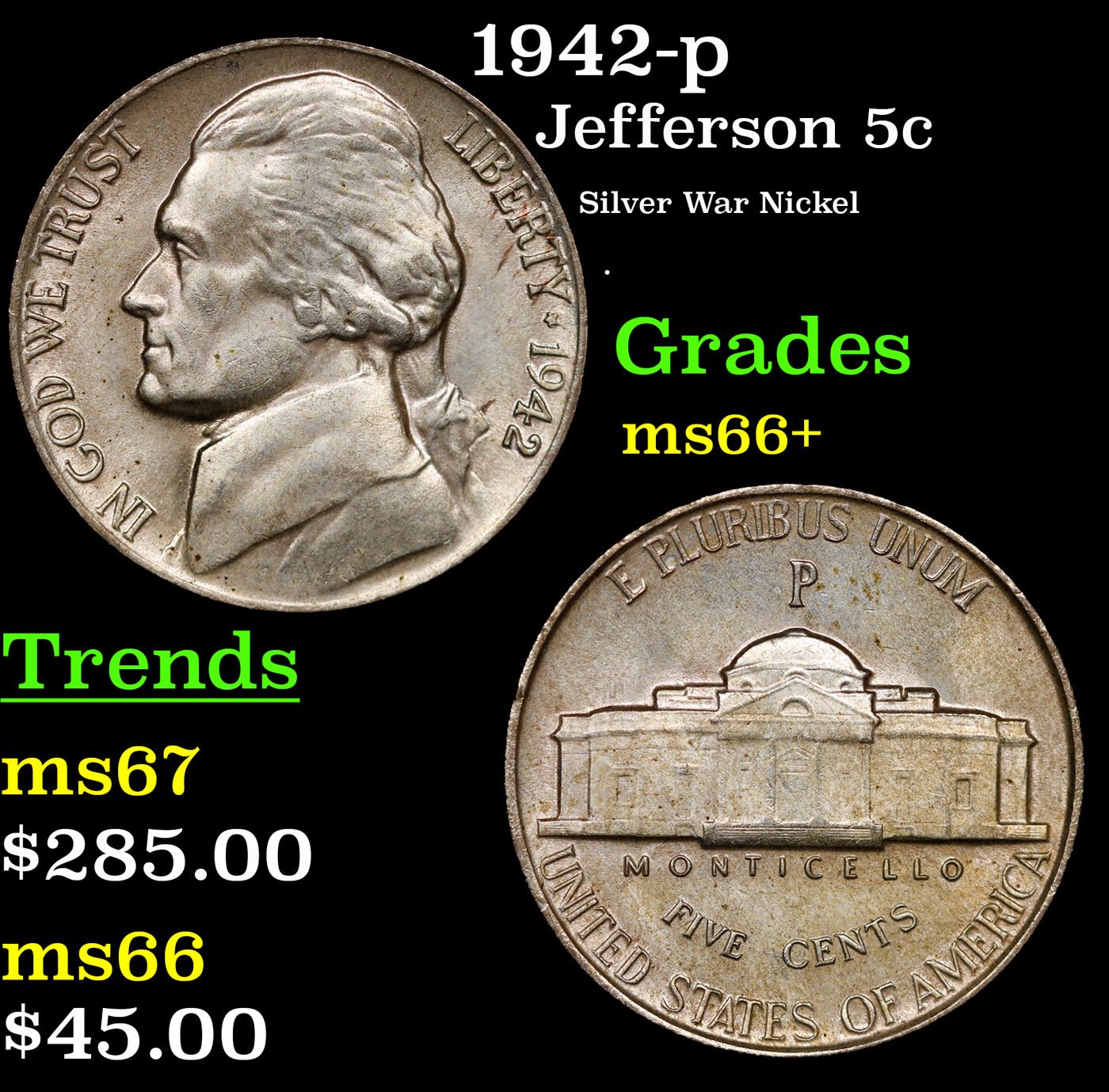 1942-p Jefferson Nickel 5c Grades GEM++ Unc.