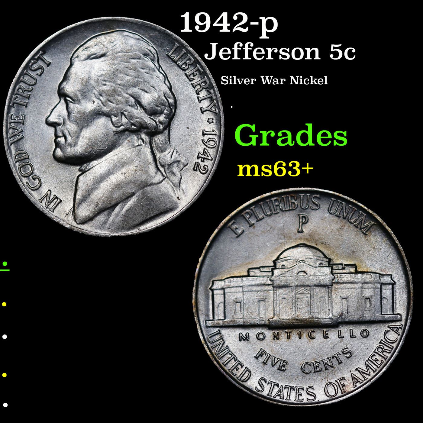 1942-p Jefferson Nickel 5c Grades Select+ Unc.