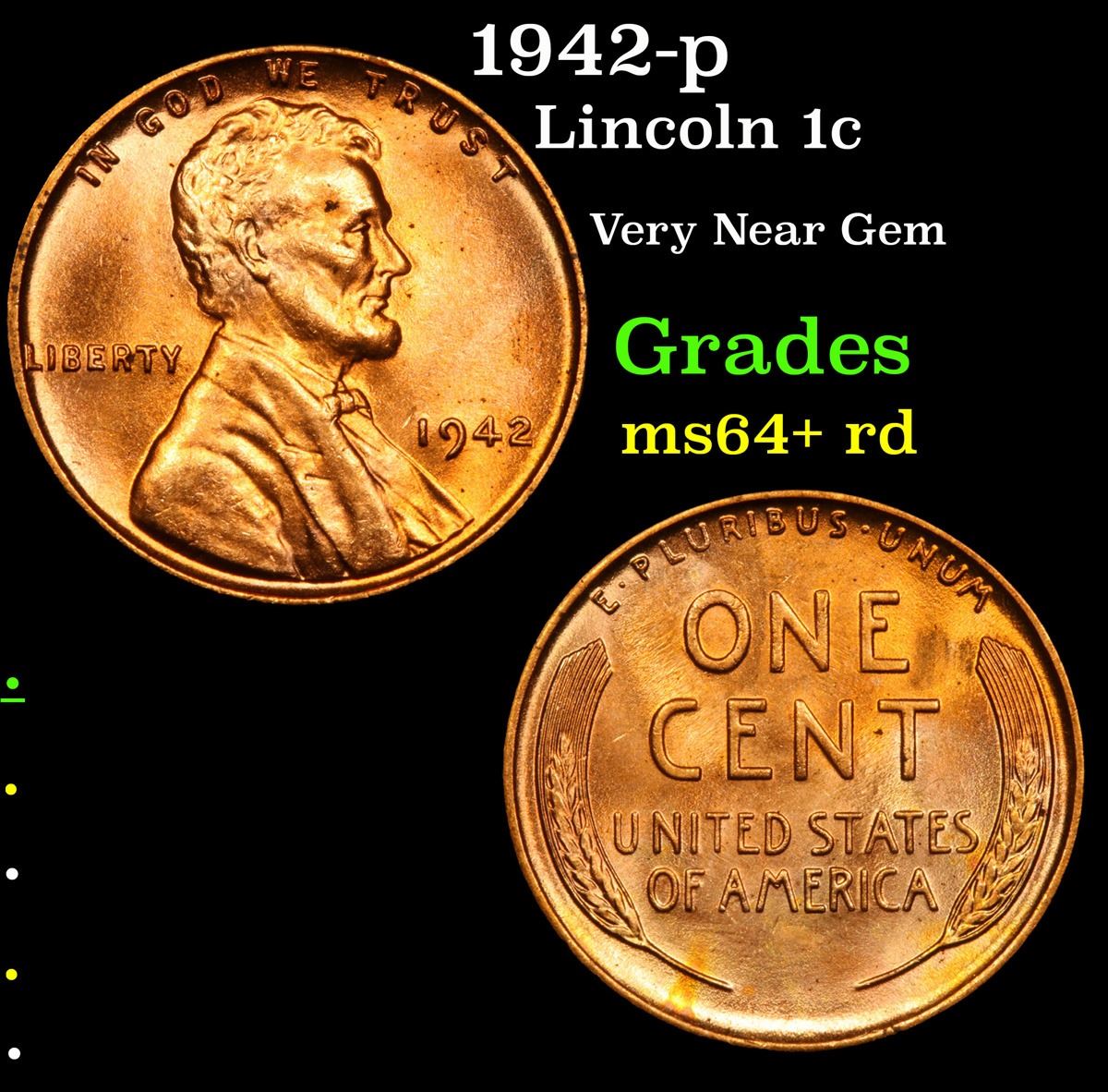 1942-p Lincoln Cent 1c Grades Choice+ Unc RD.