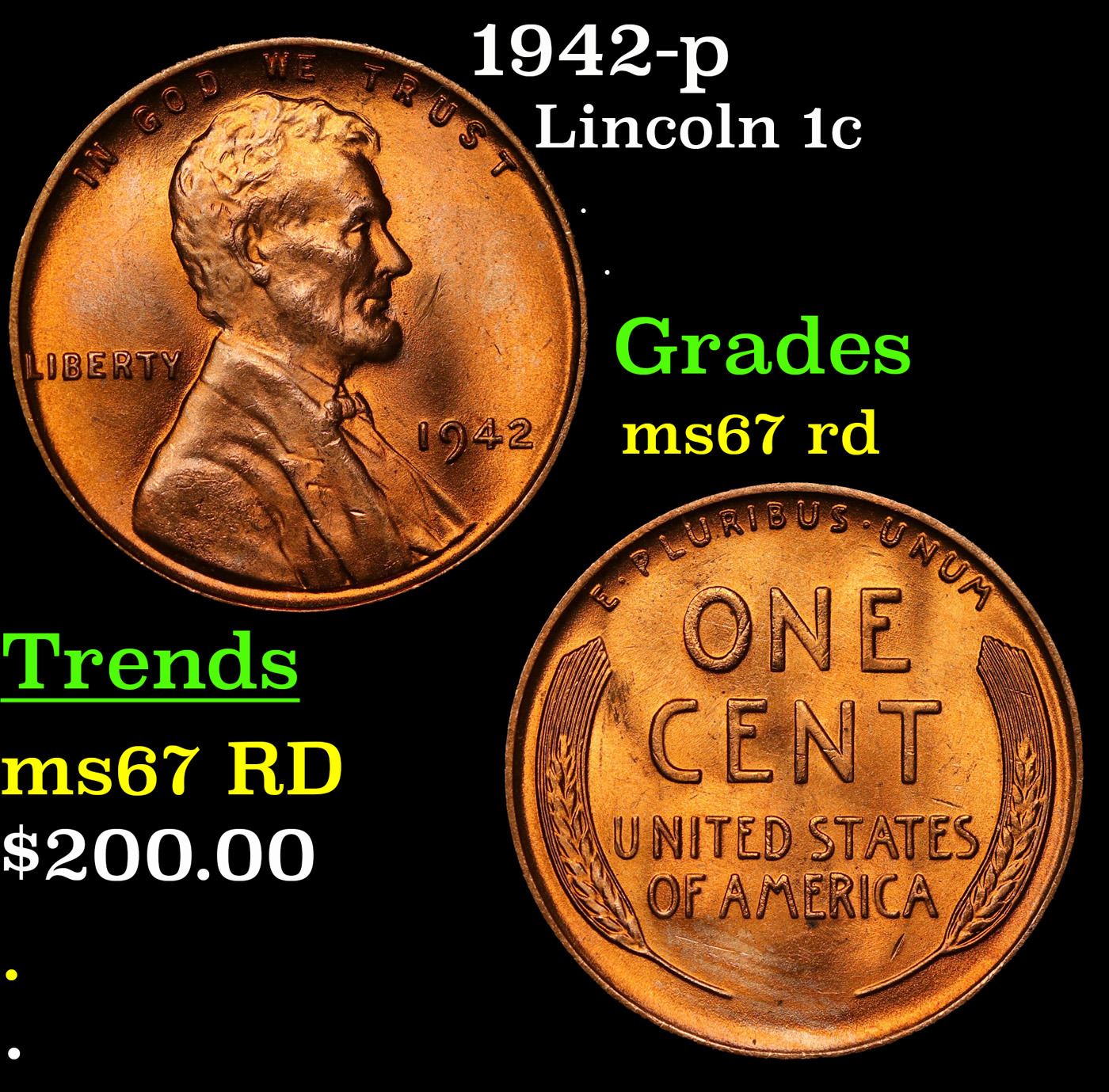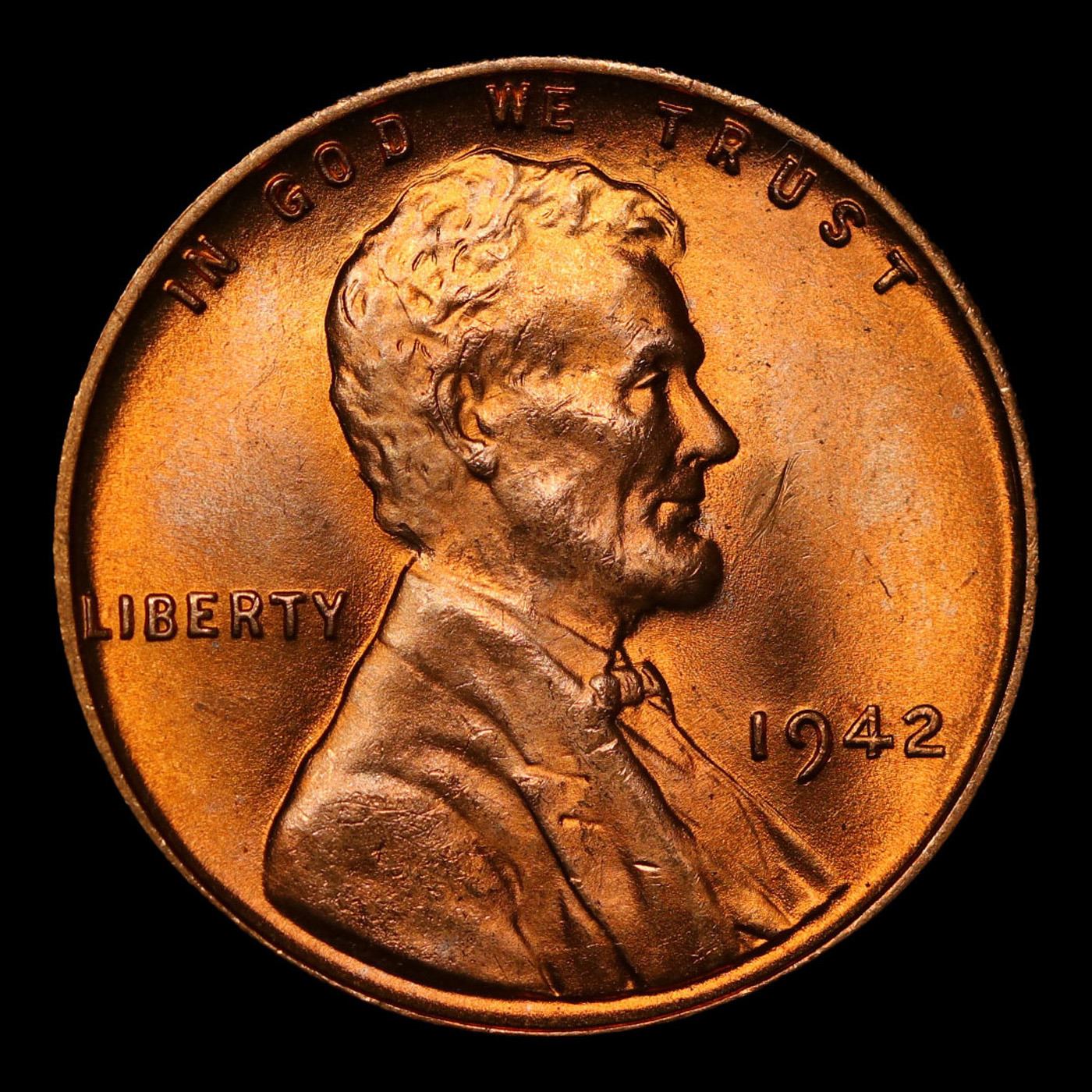1942-p Lincoln Cent 1c Grades GEM++ Unc RD.