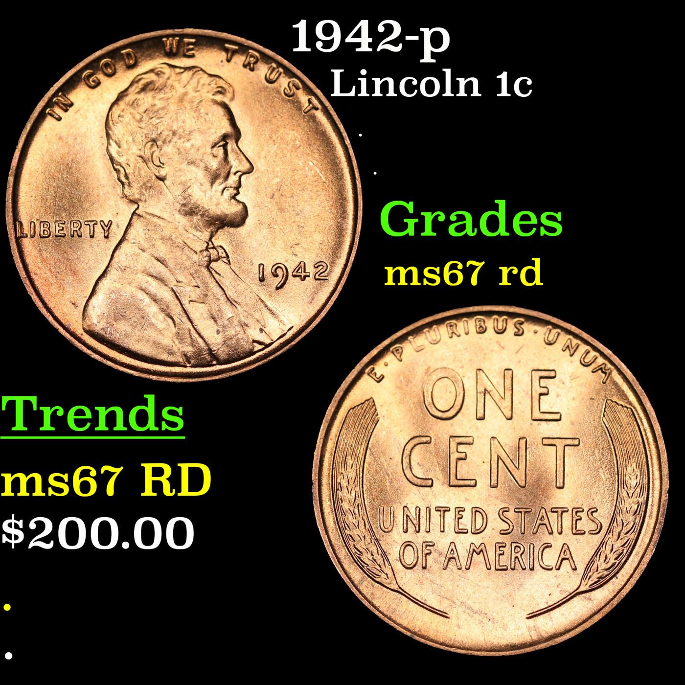 1942-p Lincoln Cent 1c Grades GEM++ Unc RD.