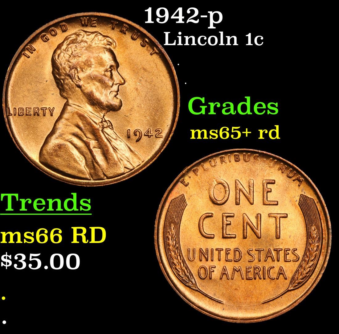 1942-p . . Lincoln Cent 1c Grades Gem+ Unc RD.