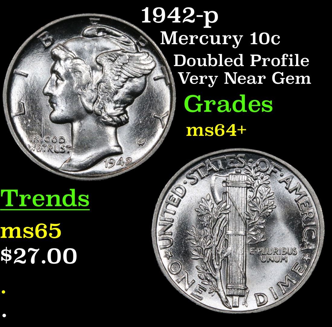 1942-p Doubled Profile Very Near Gem Mercury Dime 10c Grades Choice+ Unc.