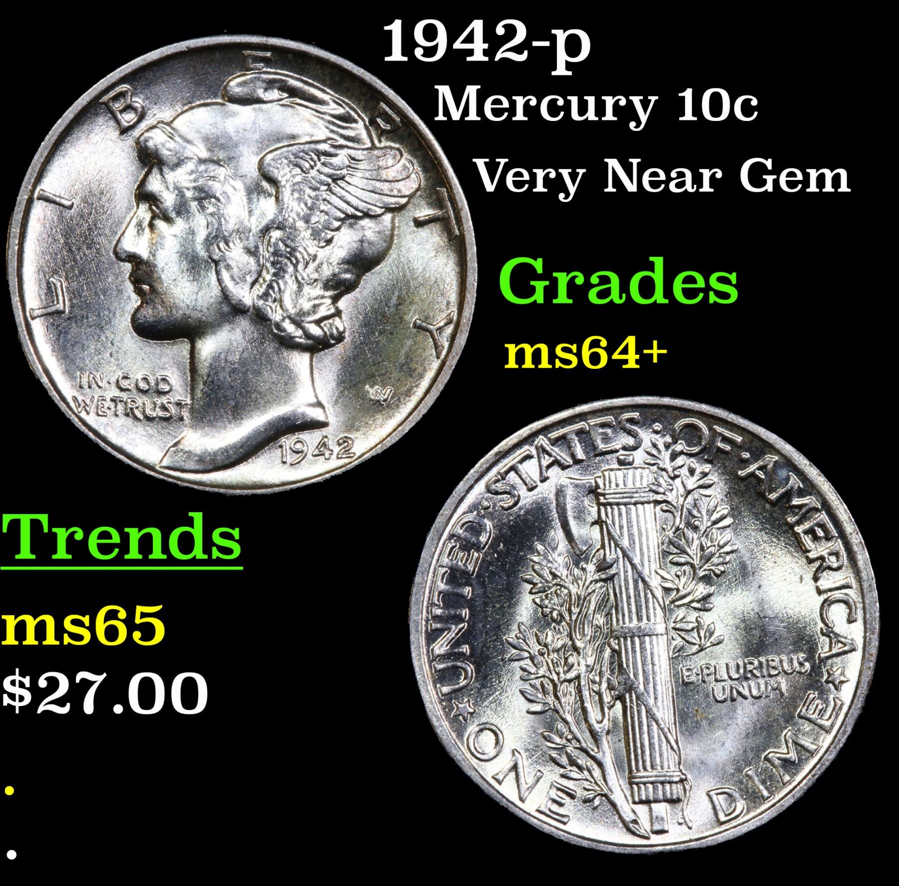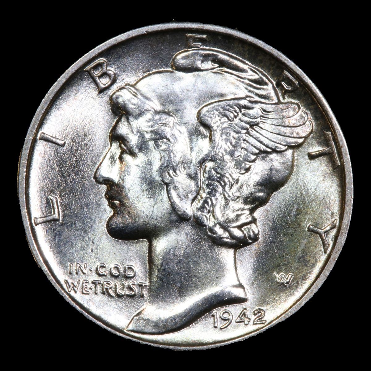 1942-p . Very Near Gem Mercury Dime 10c Grades Choice+ Unc.