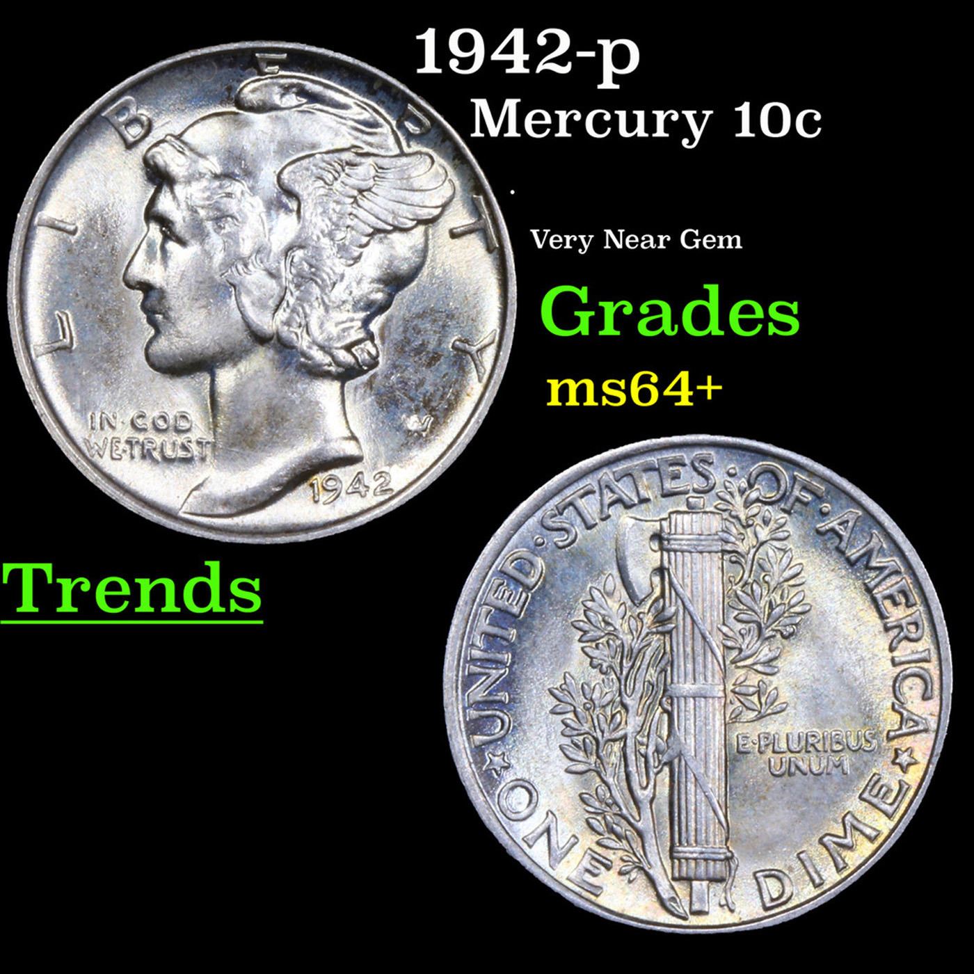 1942-p Mercury Dime 10c Grades Choice+ Unc.