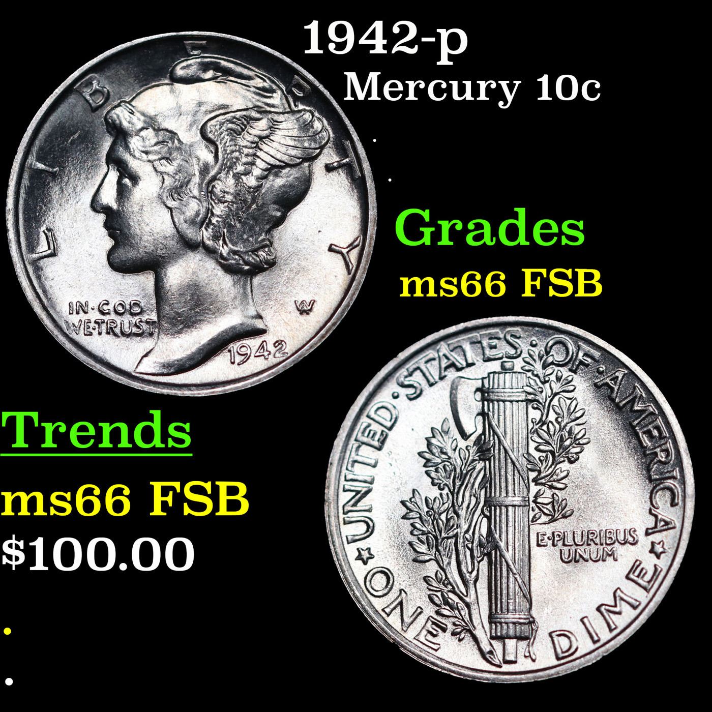 1942-p Mercury Dime 10c Grades GEM+ FSB.