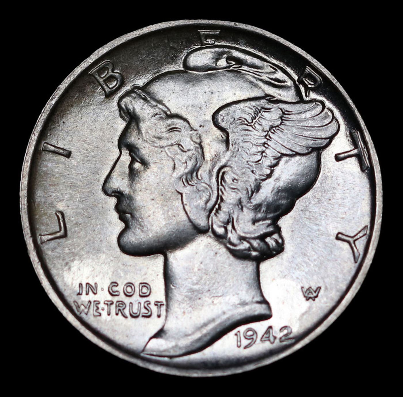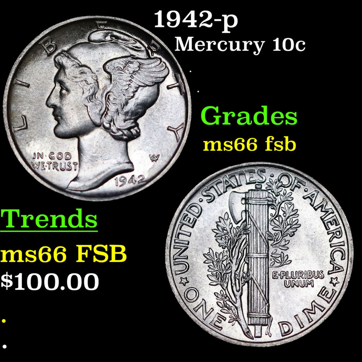 1942-p Mercury Dime 10c Grades GEM+ FSB.