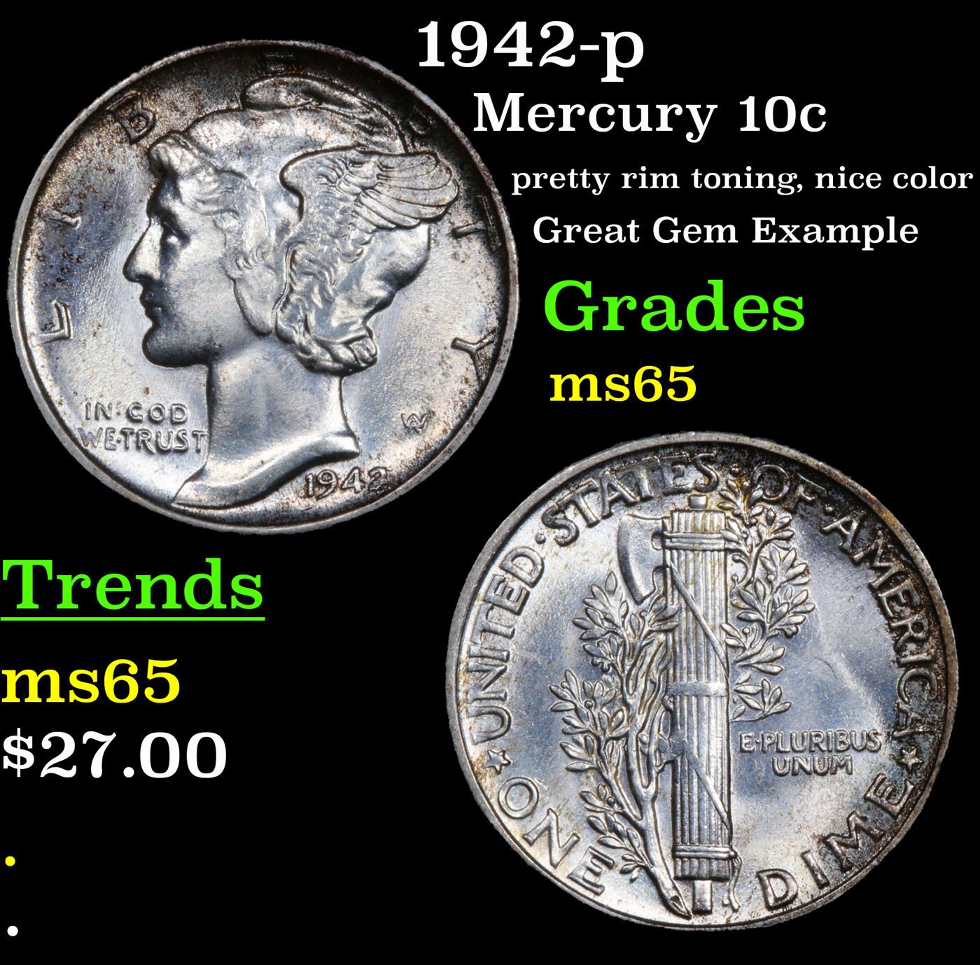 1942-p Mercury Dime 10c Grades GEM Unc.