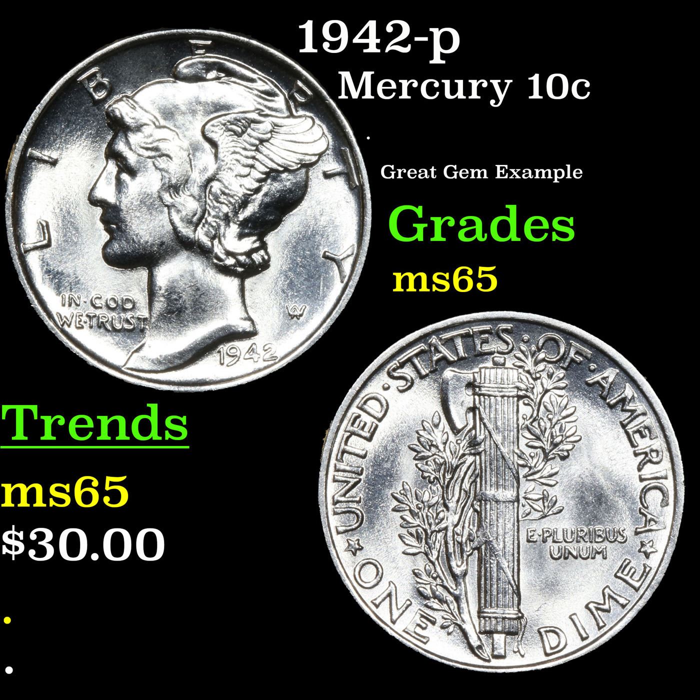 1942-p Mercury Dime 10c Grades GEM Unc.