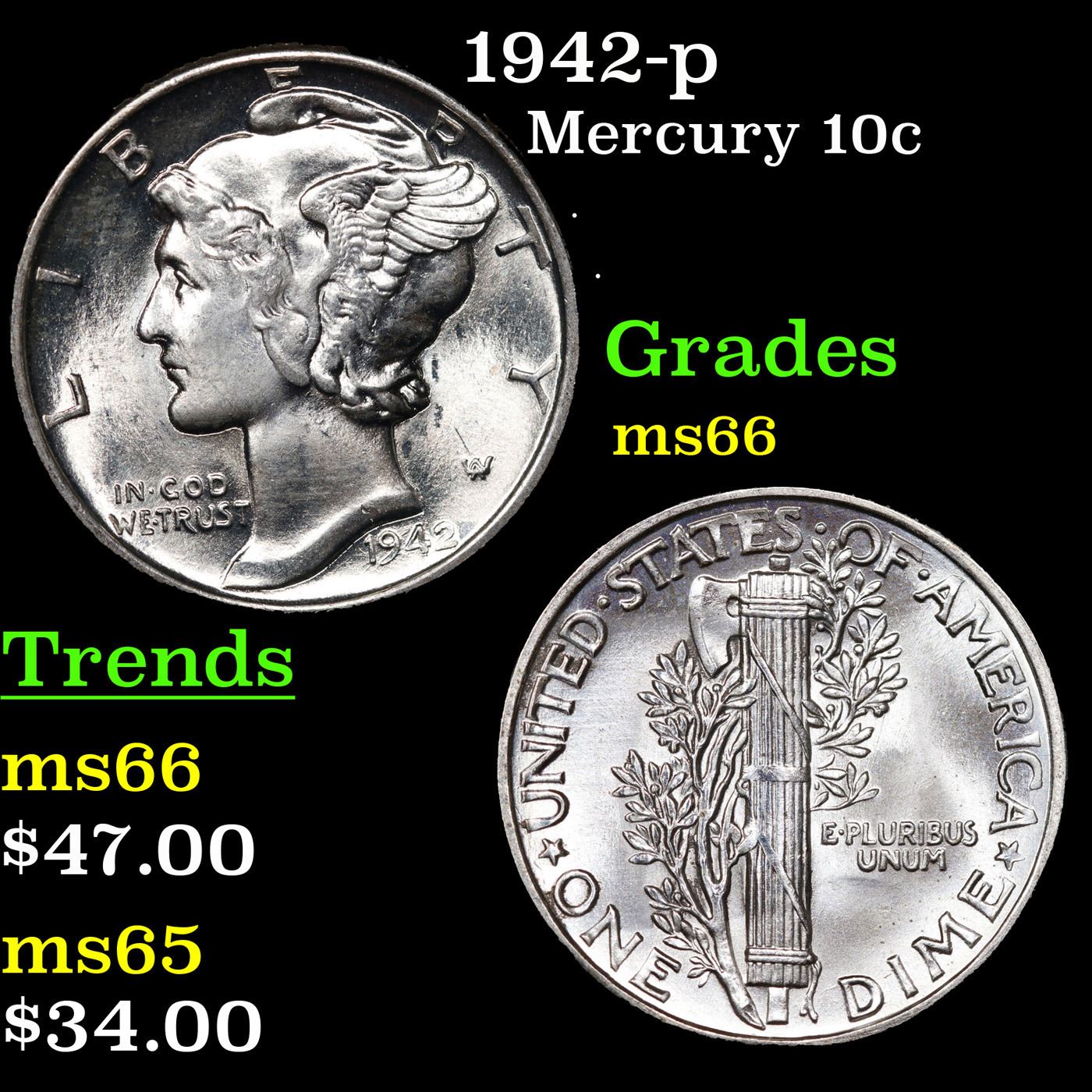 1942-p Mercury Dime 10c Grades GEM+ Unc.