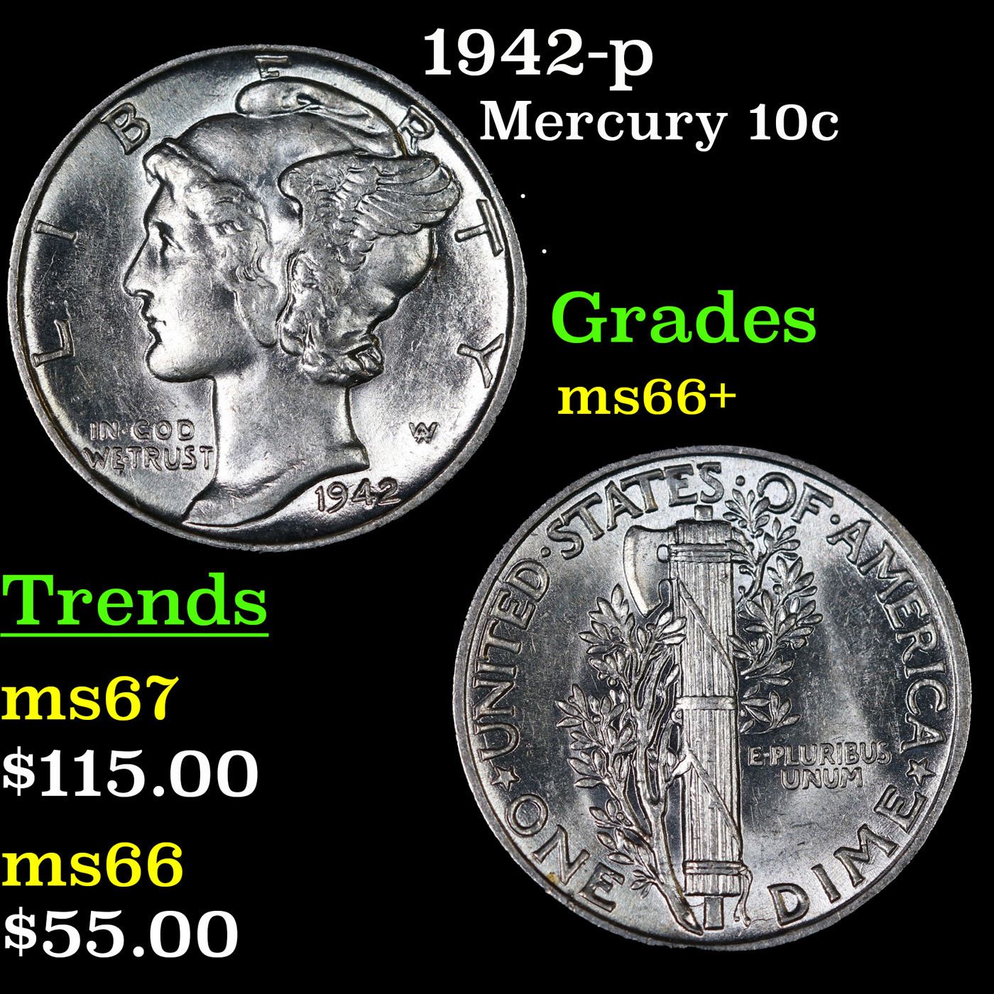 1942-p Mercury Dime 10c Grades GEM++ Unc.