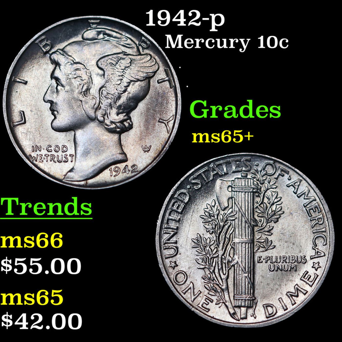1942-p Mercury Dime 10c Grades GEM+ Unc.