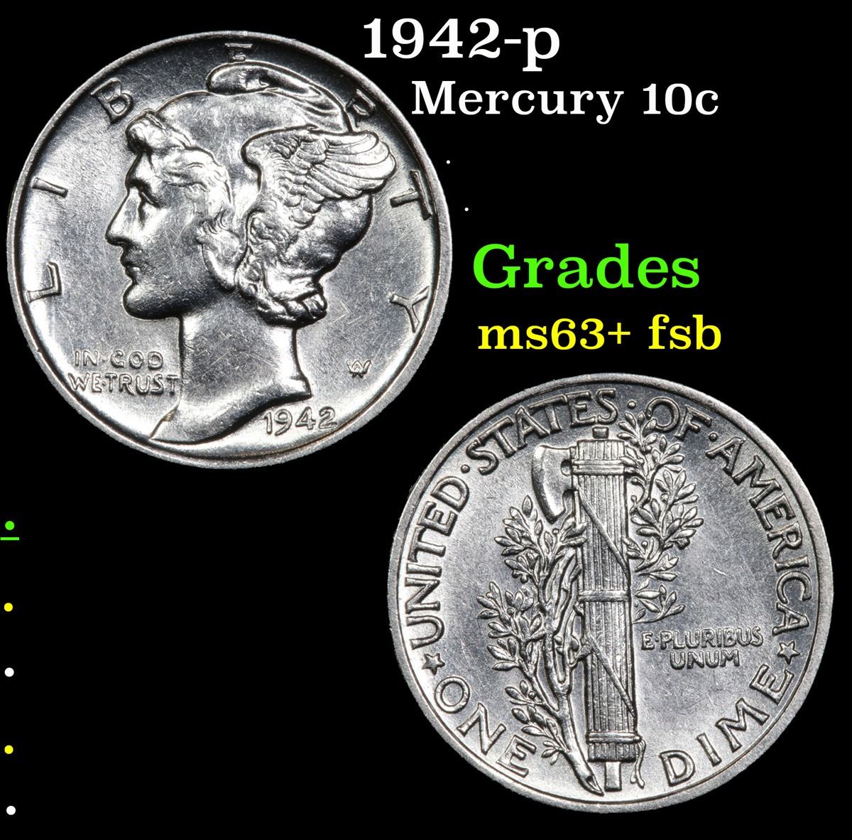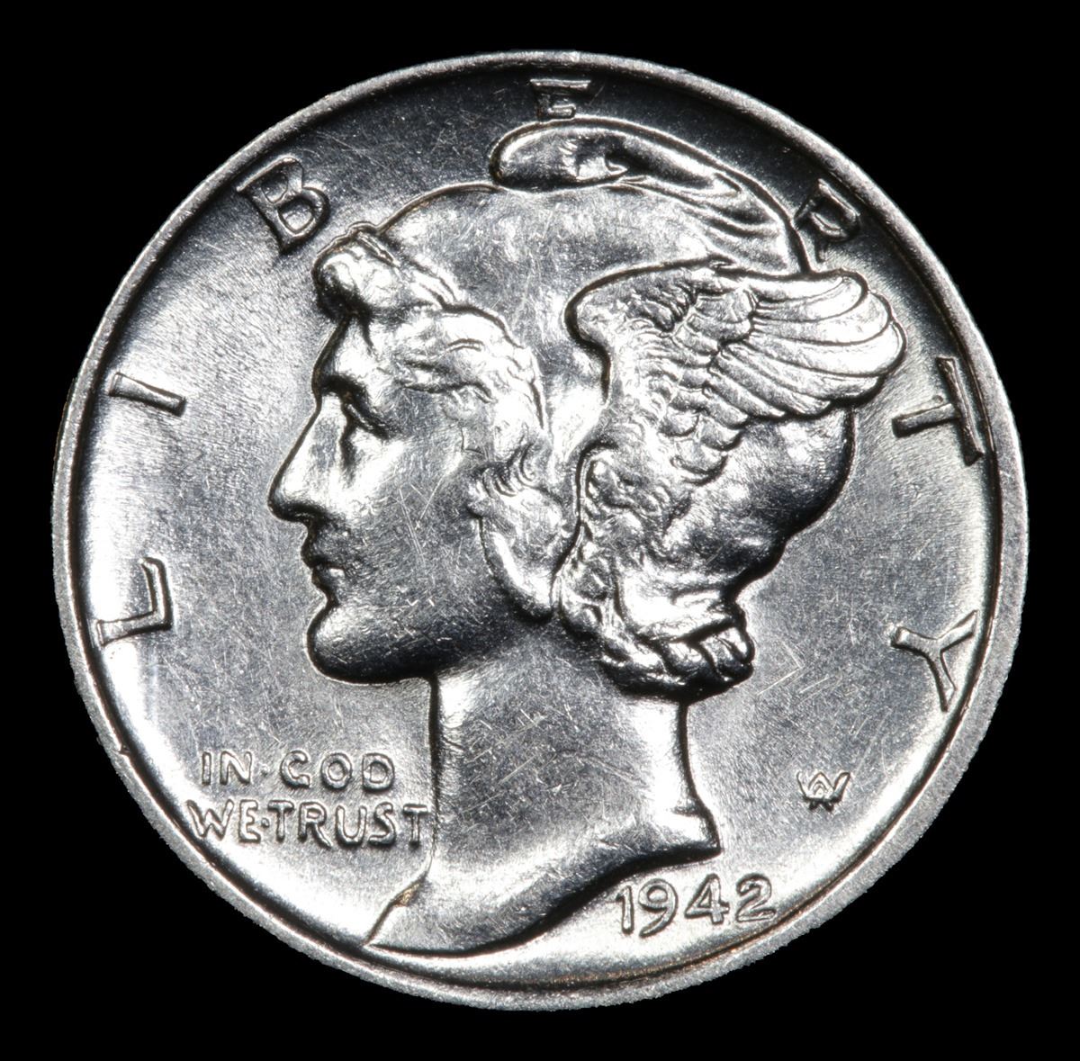 1942-p . . Mercury Dime 10c Grades Select Unc+ FSB.