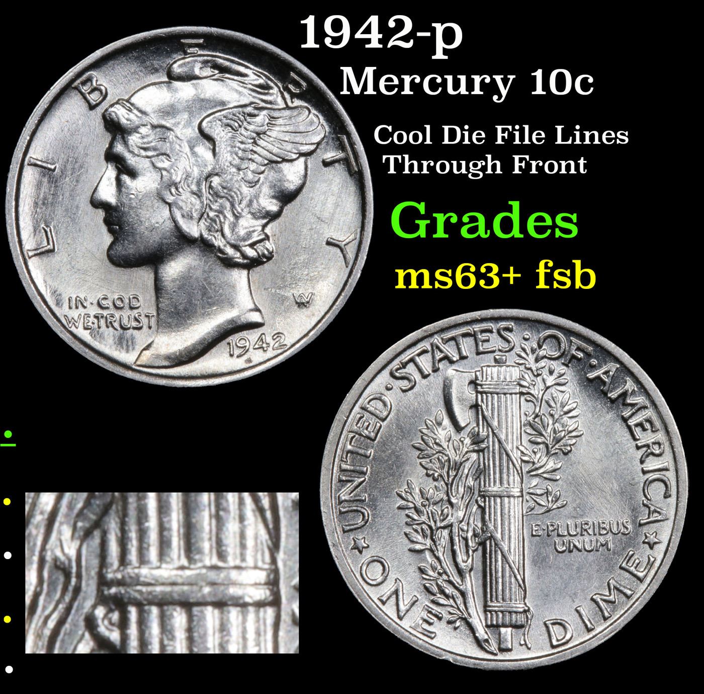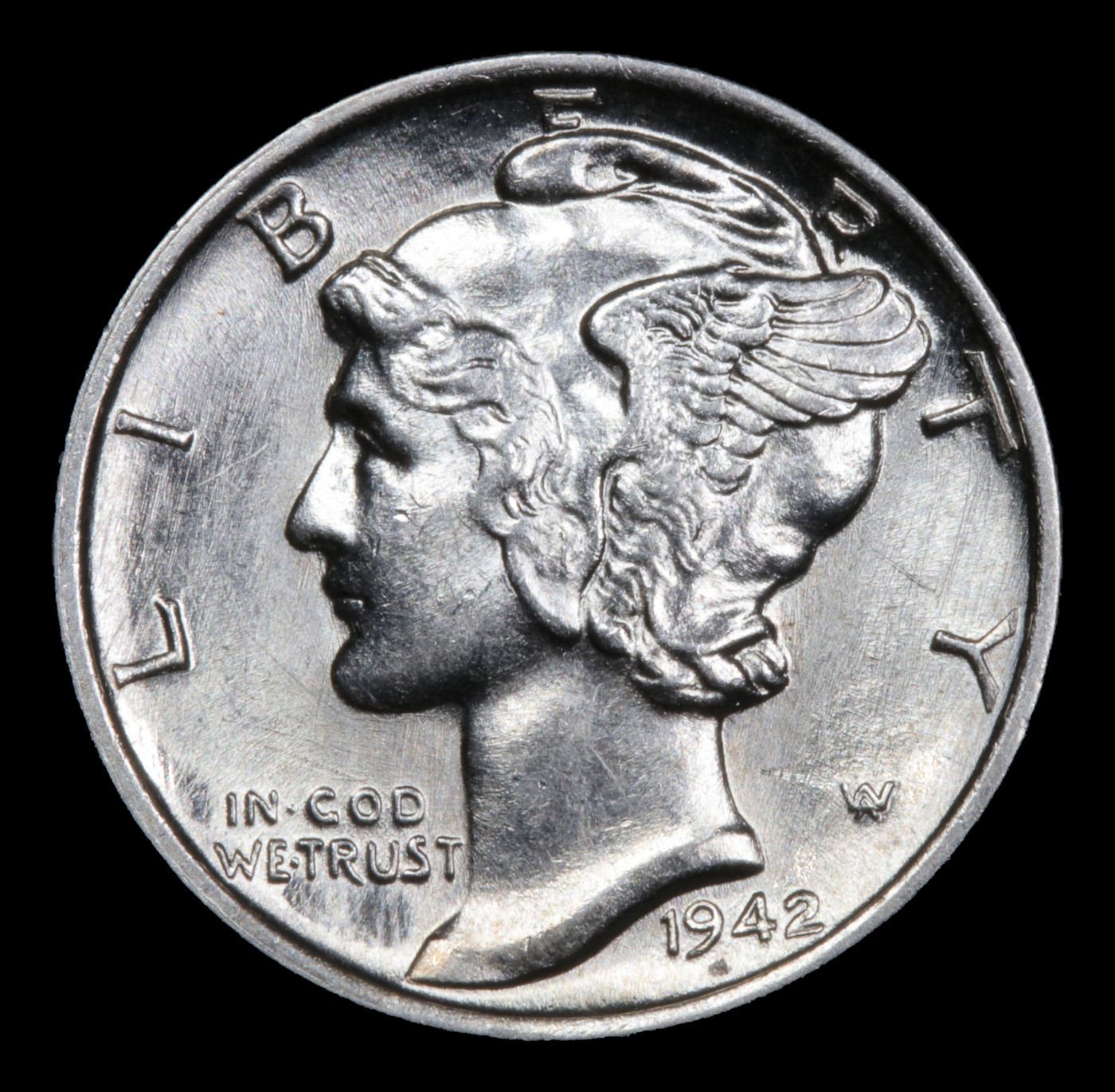 1942-p Mercury Dime 10c Grades Select Unc+ FSB.