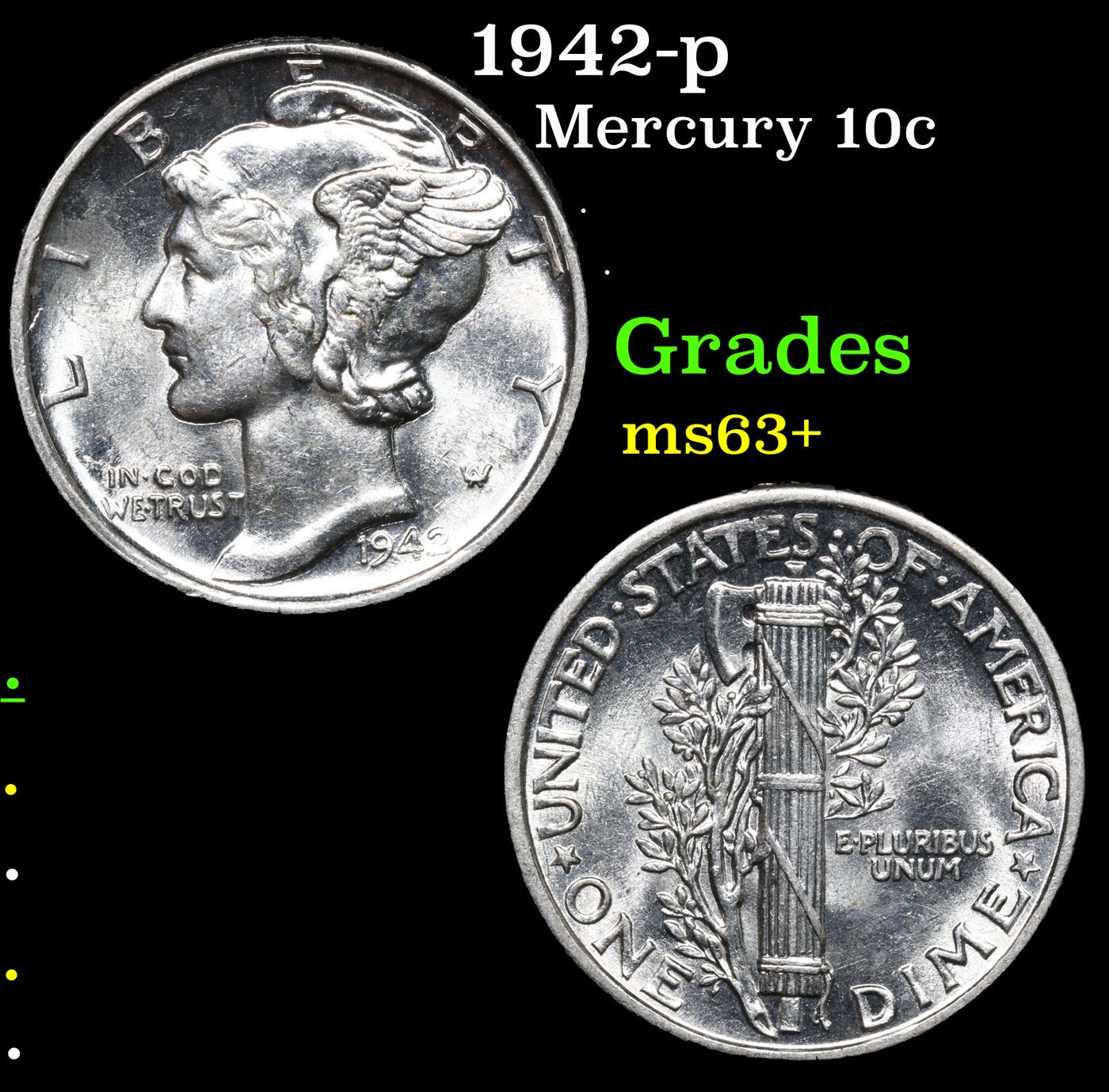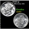 1942-p Mercury Dime 10c Grades Select+ Unc.
