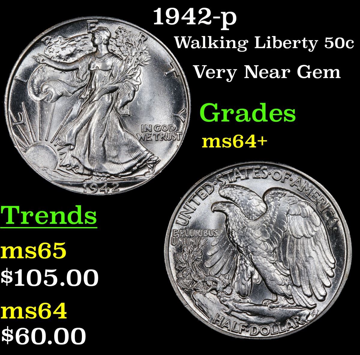 1942-p Walking Liberty Half Dollar 50c Grades Choice+ Unc.