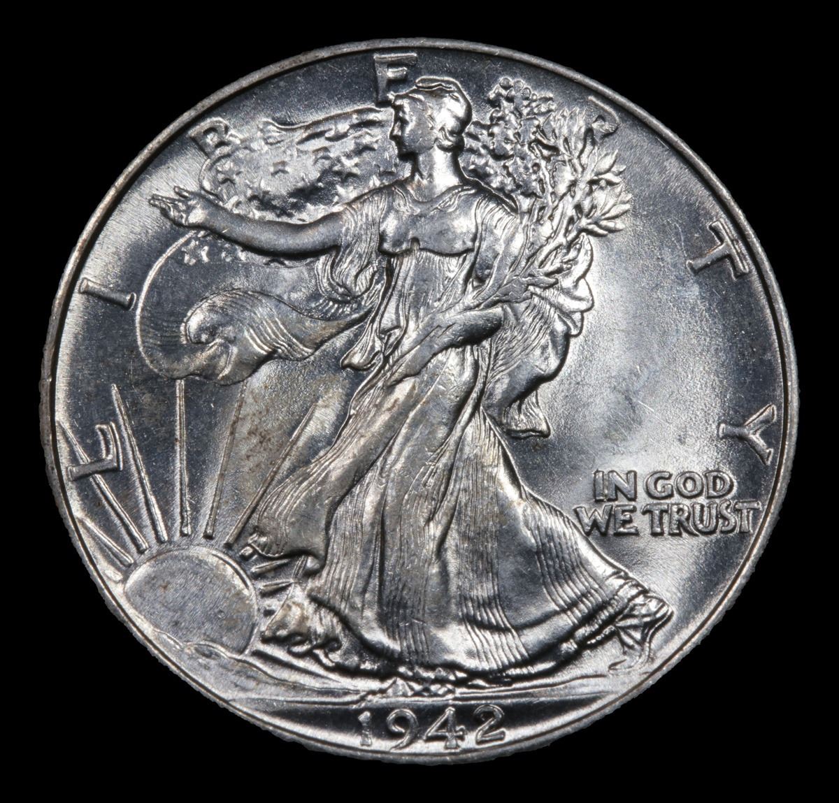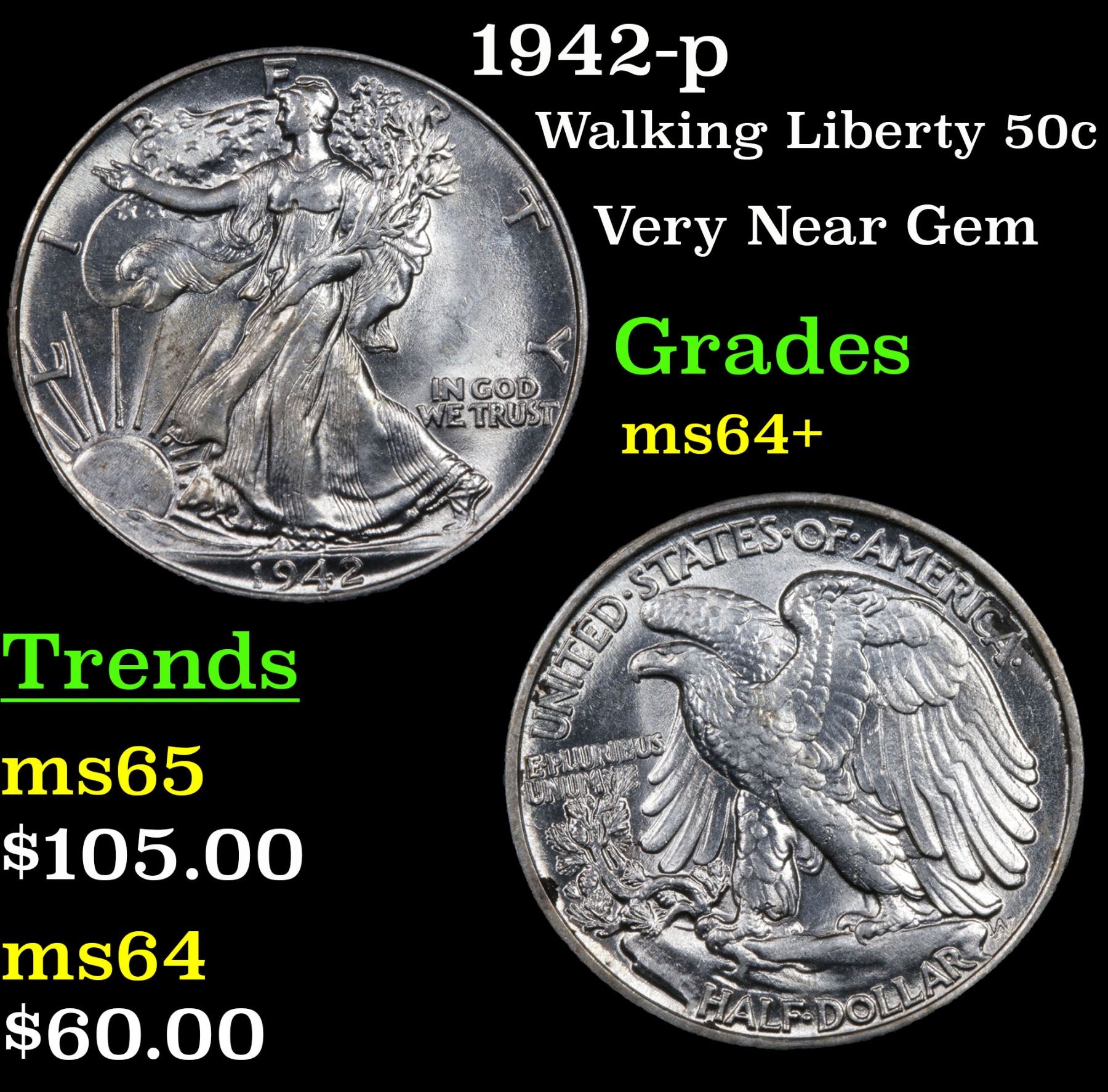 1942-p Walking Liberty Half Dollar 50c Grades Choice+ Unc.