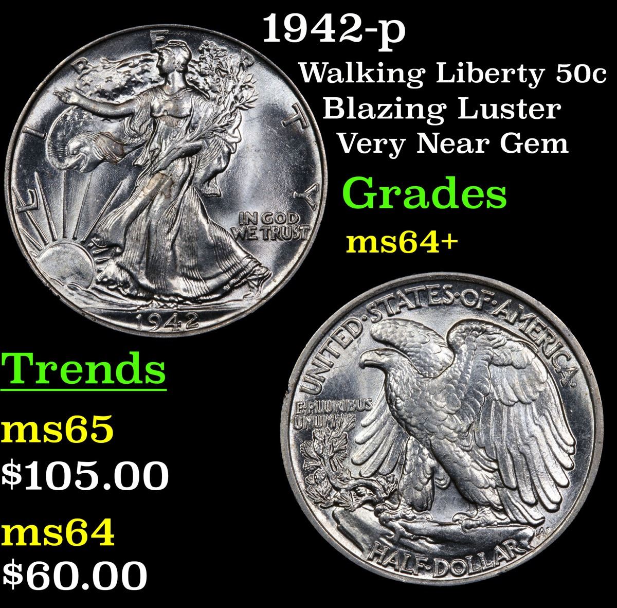 1942-p Walking Liberty Half Dollar 50c Grades Choice+ Unc.