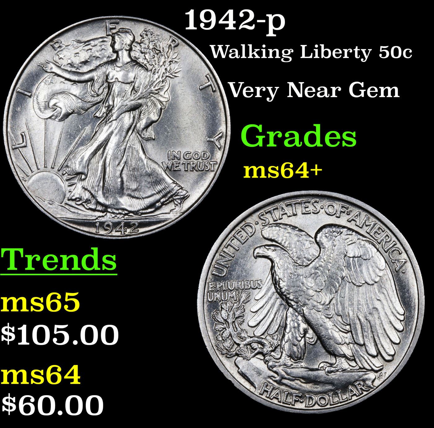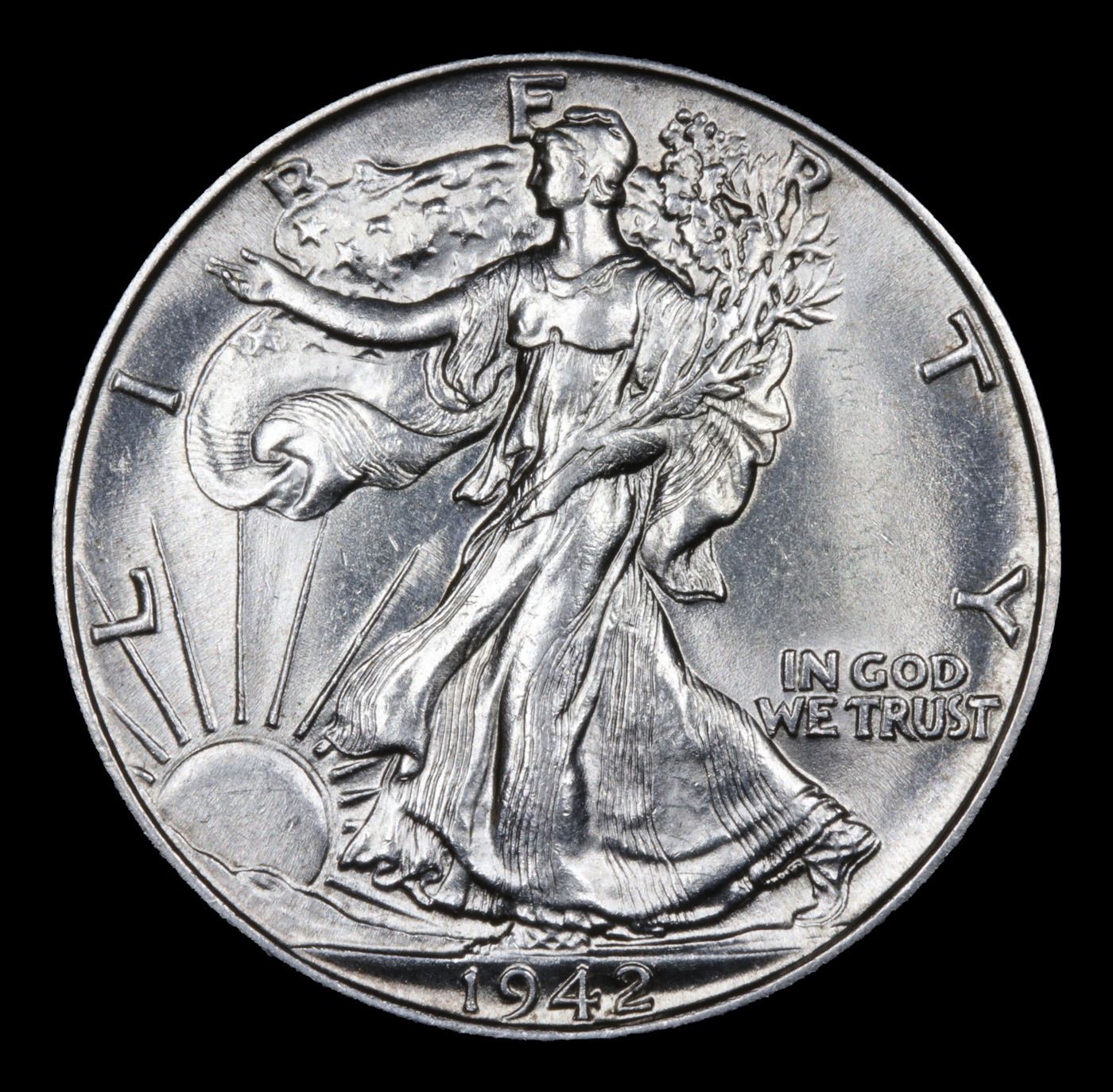 1942-p Walking Liberty Half Dollar 50c Grades Choice+ Unc.