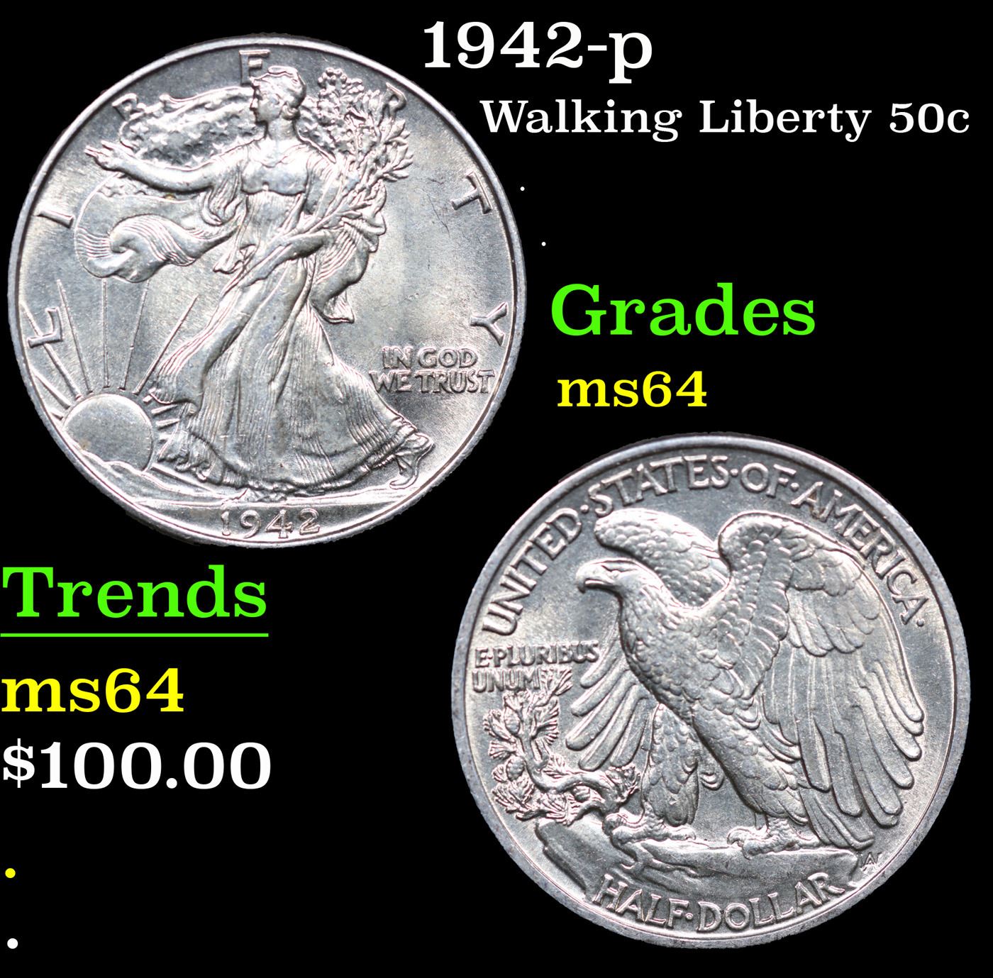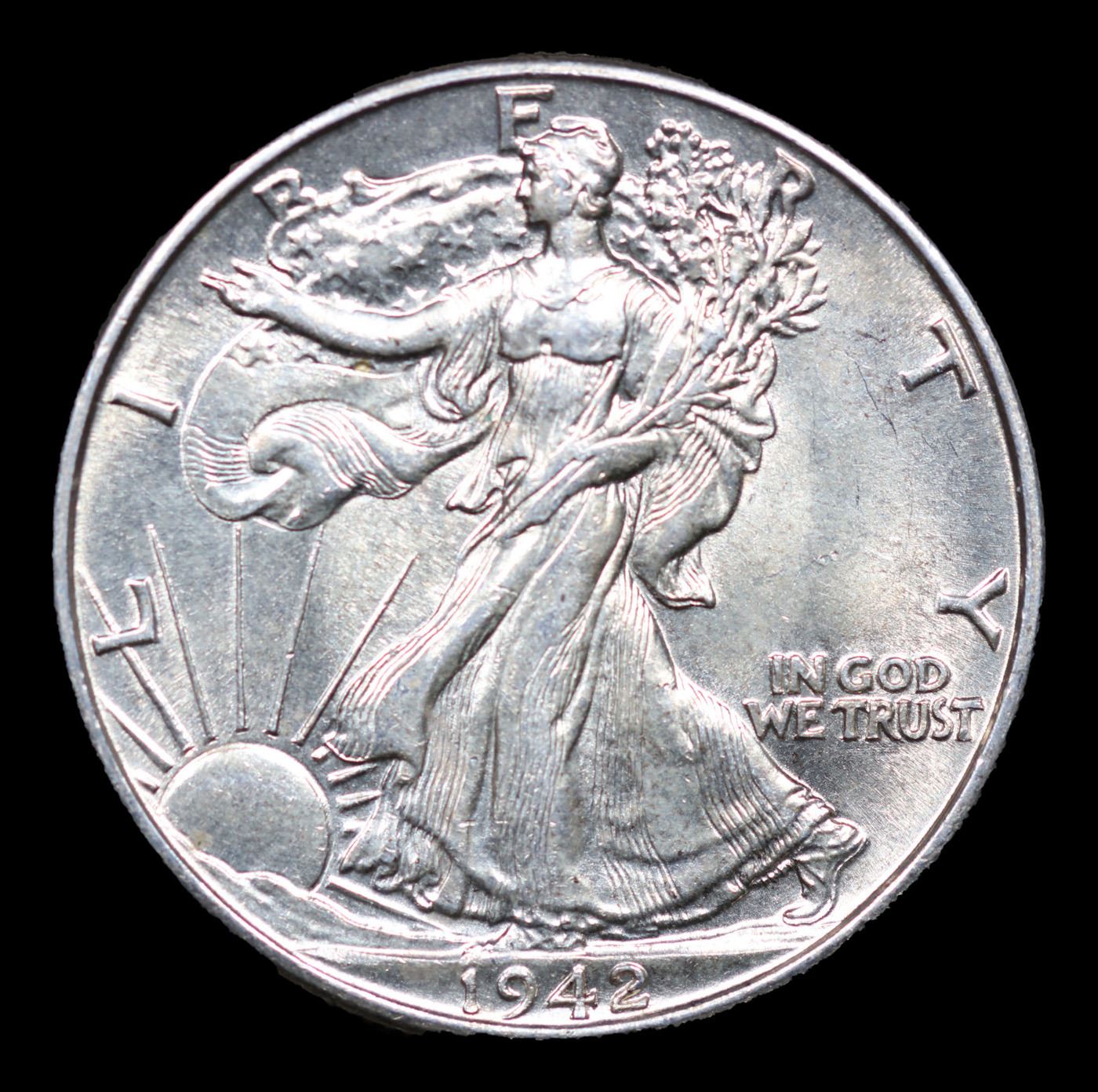 1942-p Walking Liberty Half Dollar 50c Grades Choice Unc.