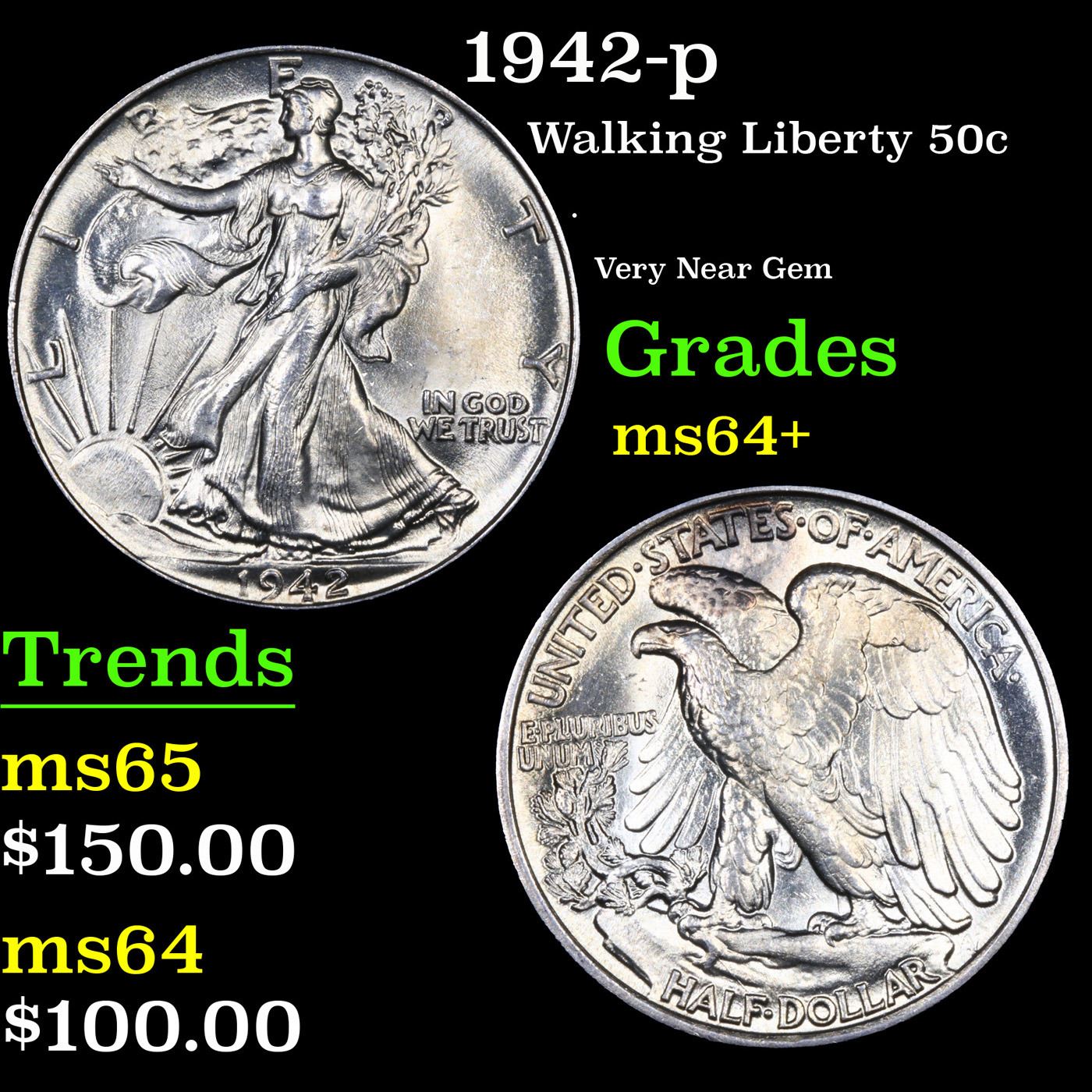 1942-p Walking Liberty Half Dollar 50c Grades Choice+ Unc.