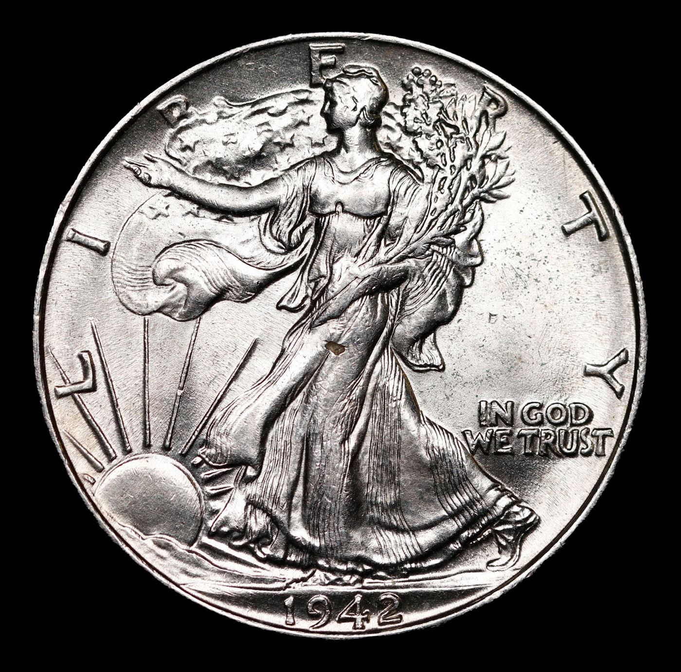 1942-p Walking Liberty Half Dollar 50c Grades Choice+ Unc.