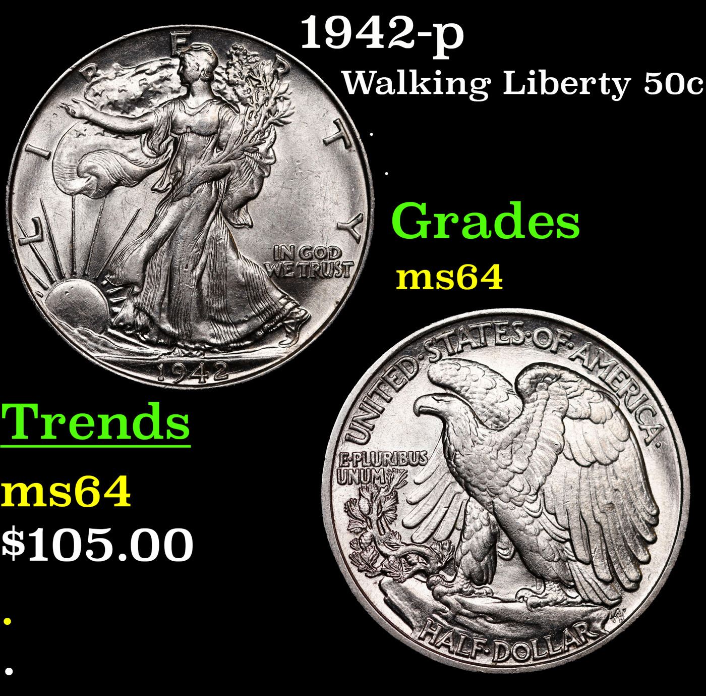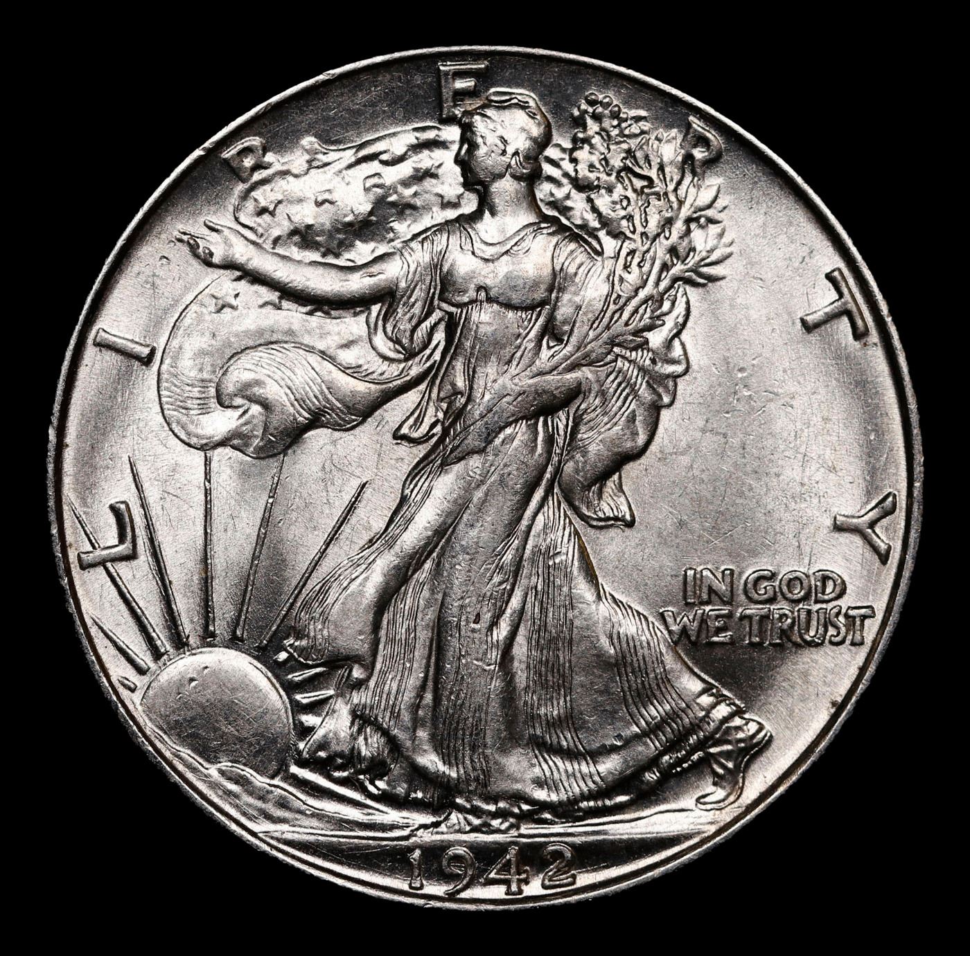 1942-p Walking Liberty Half Dollar 50c Grades Choice Unc.