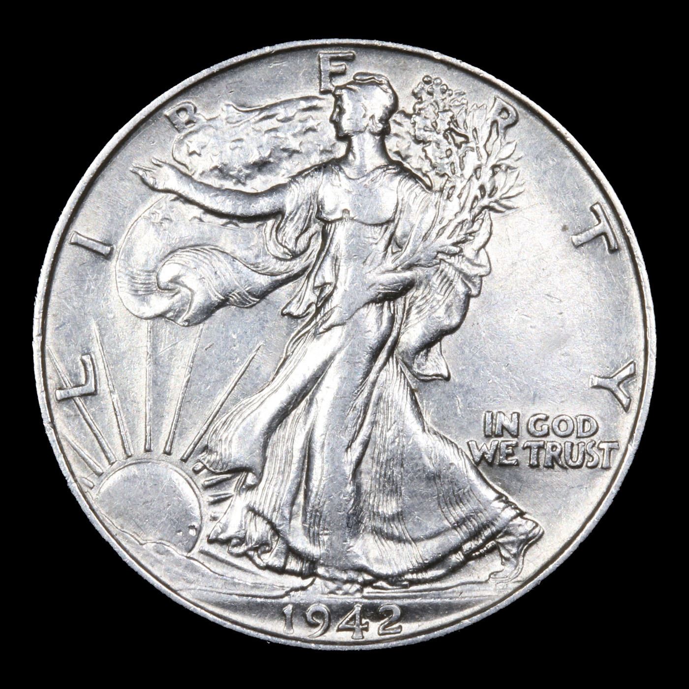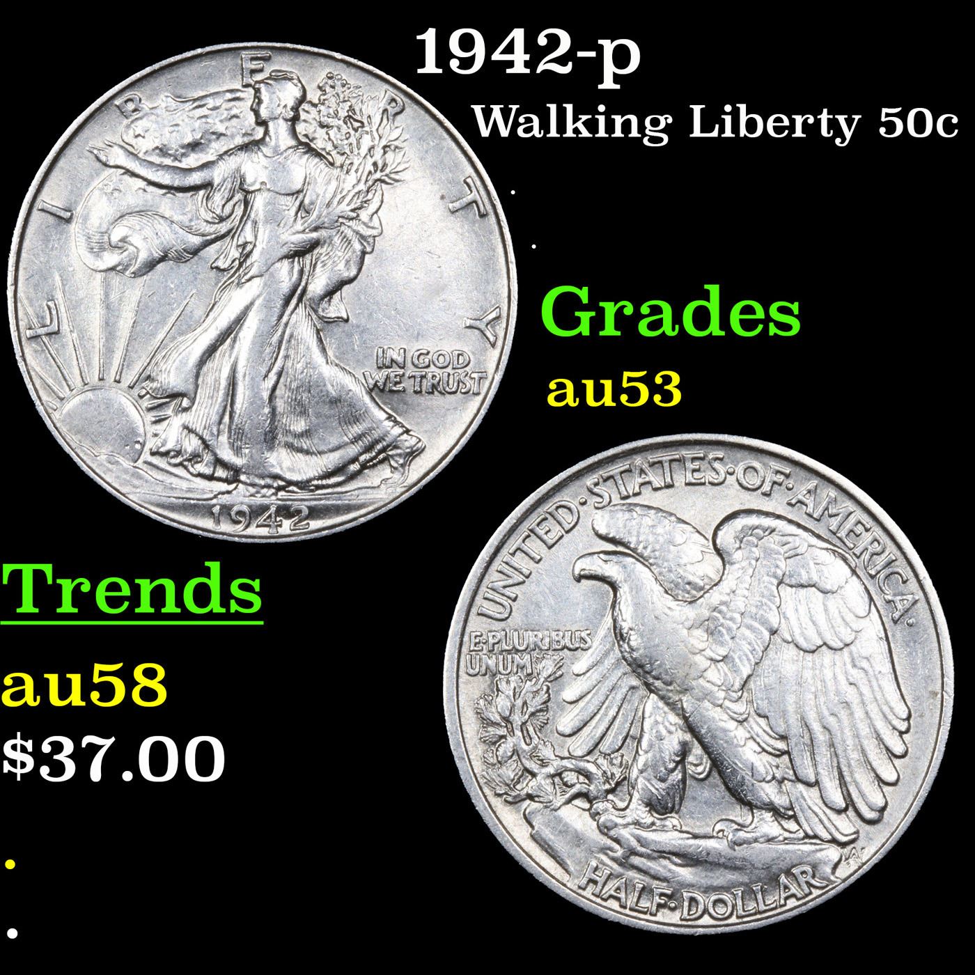 1942-p Walking Liberty Half Dollar 50c Grades Select AU.