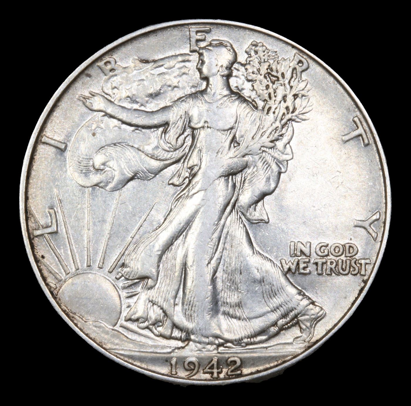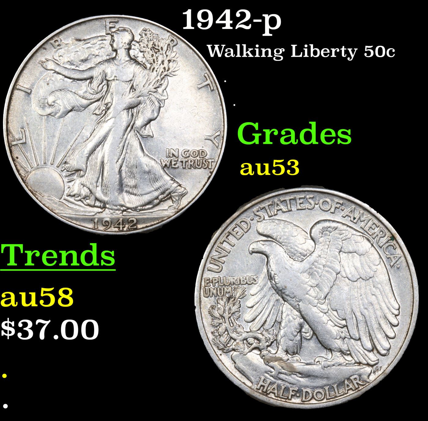 1942-p Walking Liberty Half Dollar 50c Grades Select AU.