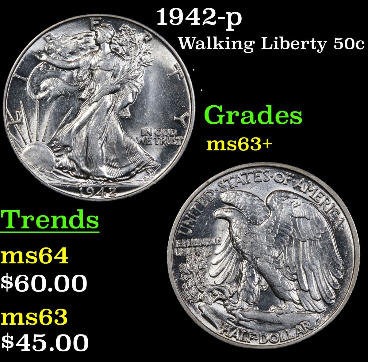 1942-p Walking Liberty Half Dollar 50c Grades Select+ Unc.
