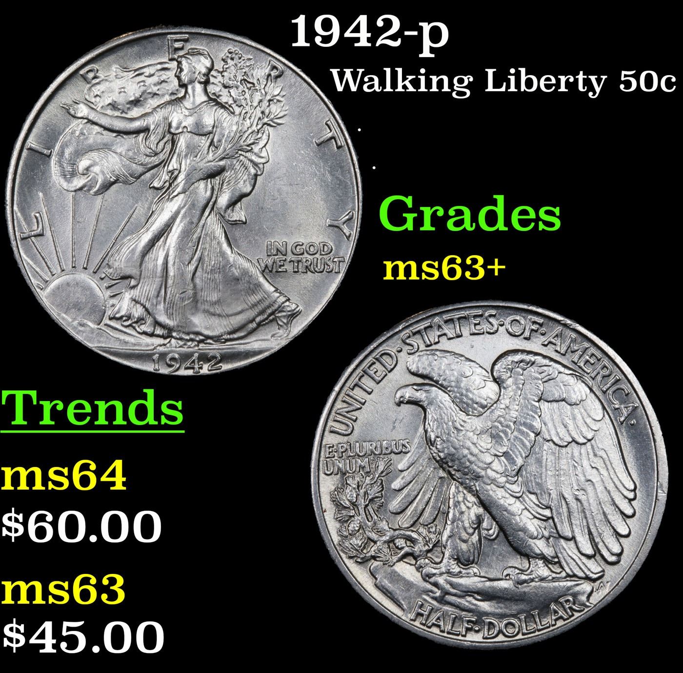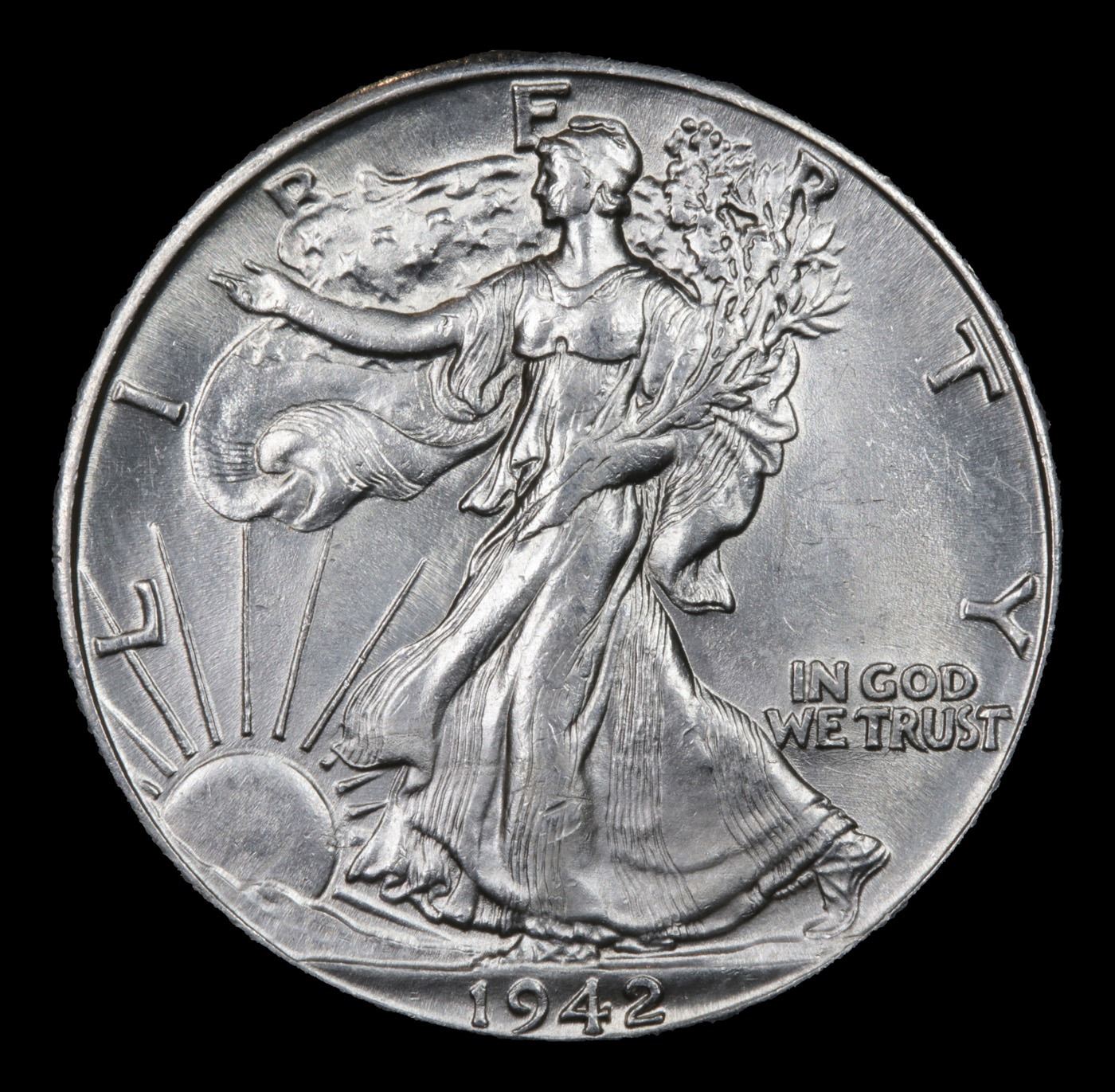 1942-p Walking Liberty Half Dollar 50c Grades Select+ Unc.