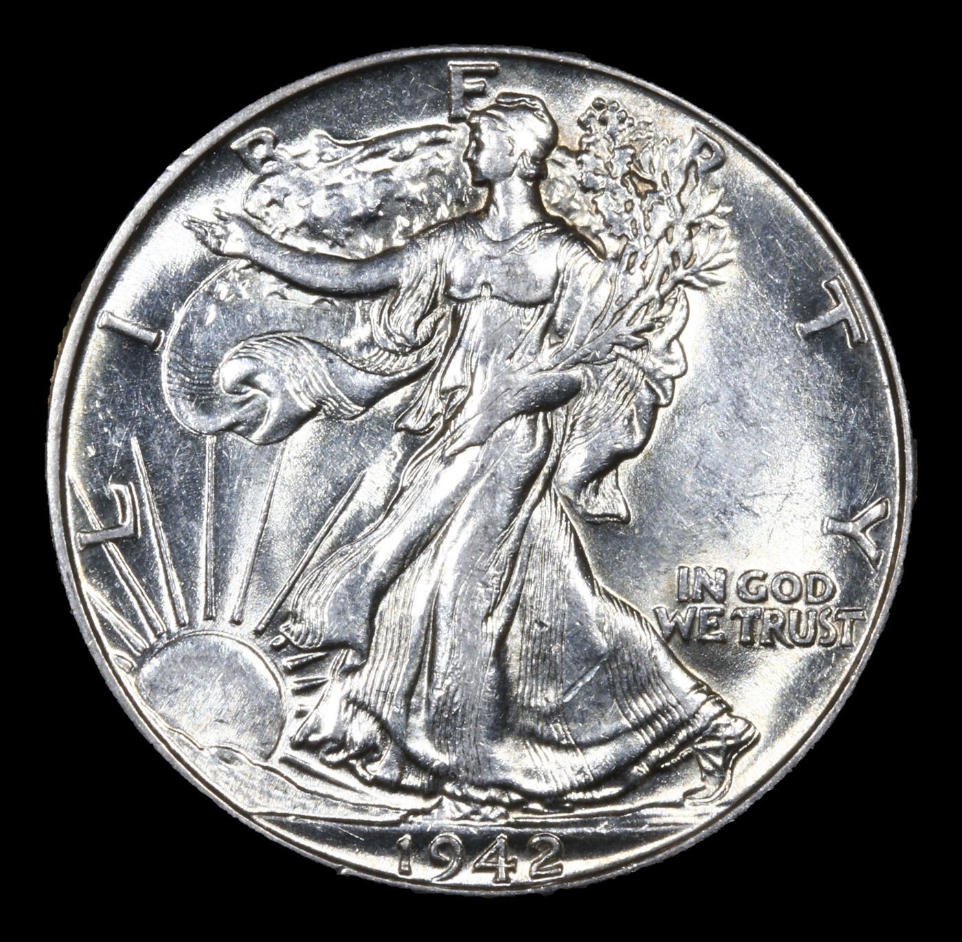 1942-p Walking Liberty Half Dollar 50c Grades Select Unc.