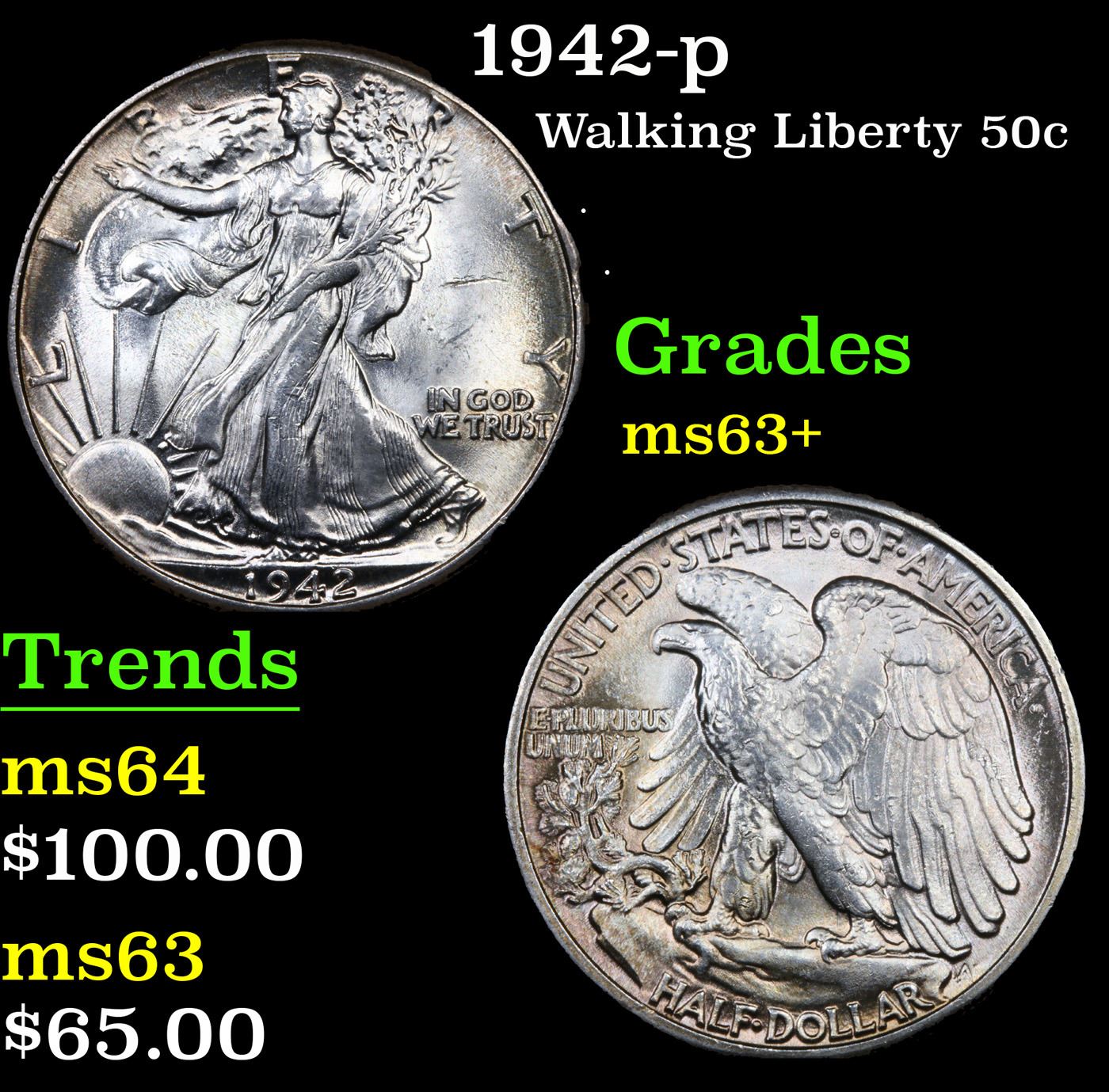 1942-p Walking Liberty Half Dollar 50c Grades Select+ Unc.