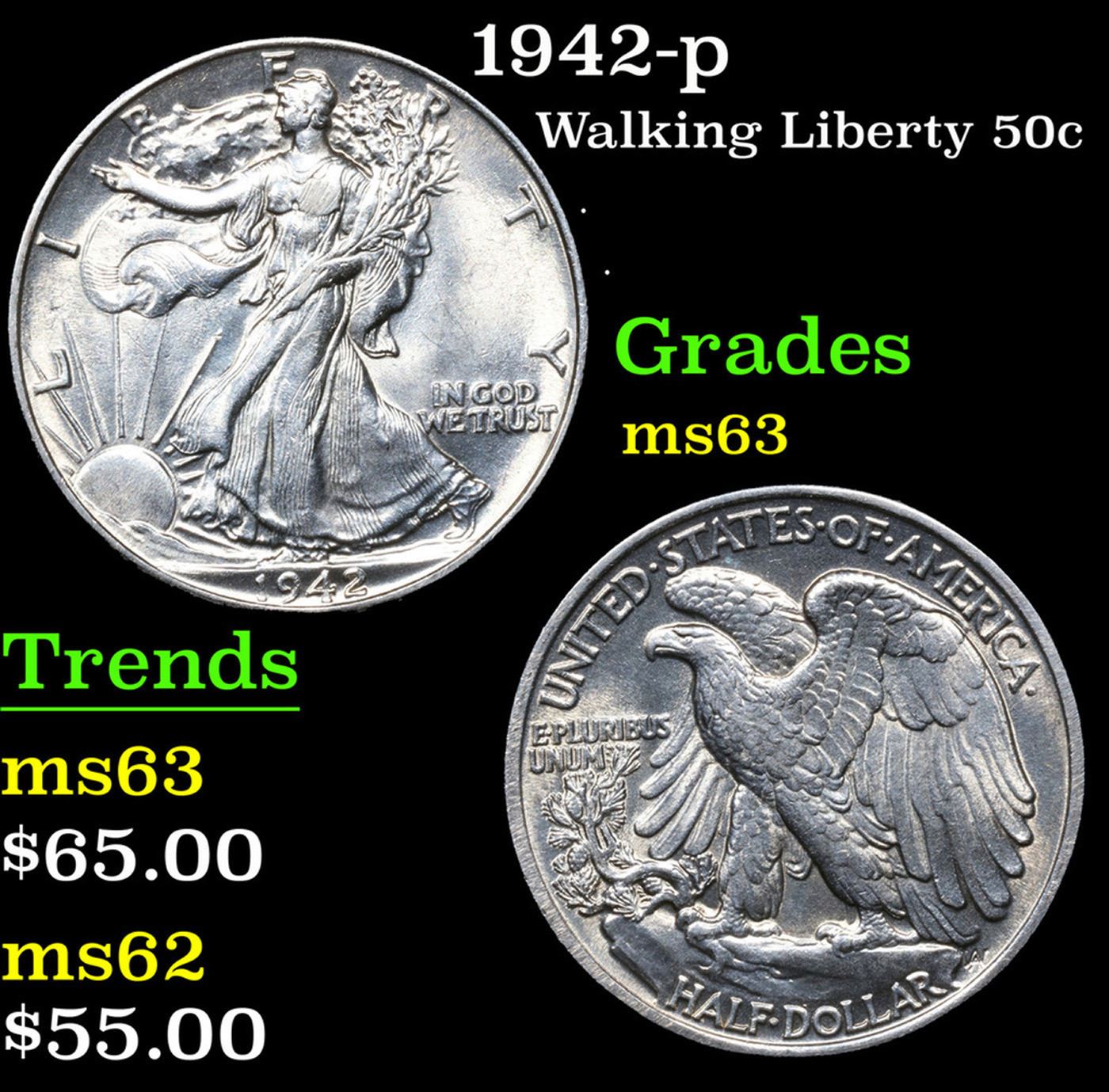 1942-p Walking Liberty Half Dollar 50c Grades Select Unc.