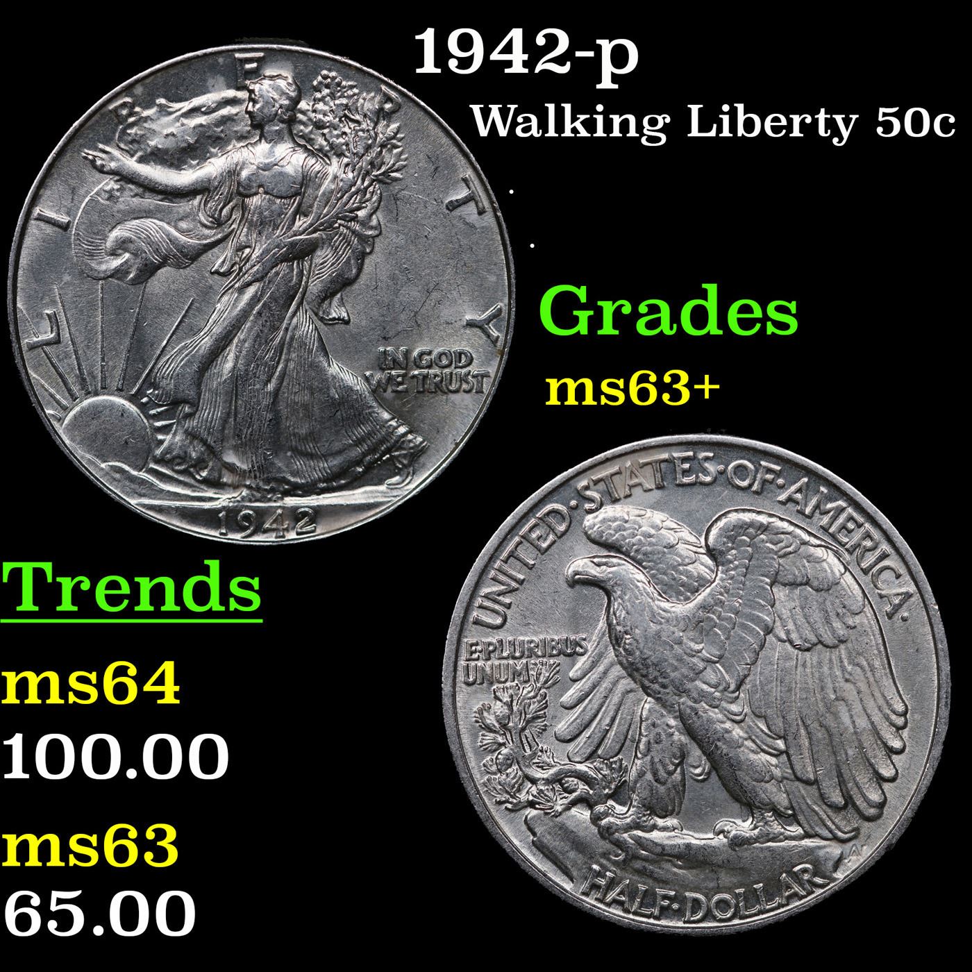 1942-p Walking Liberty Half Dollar 50c Grades Select+ Unc.