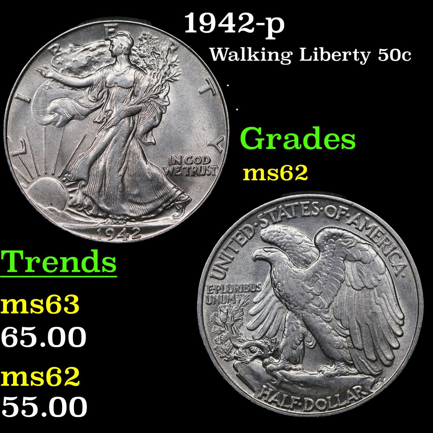 1942-p Walking Liberty Half Dollar 50c Grades Select Unc.